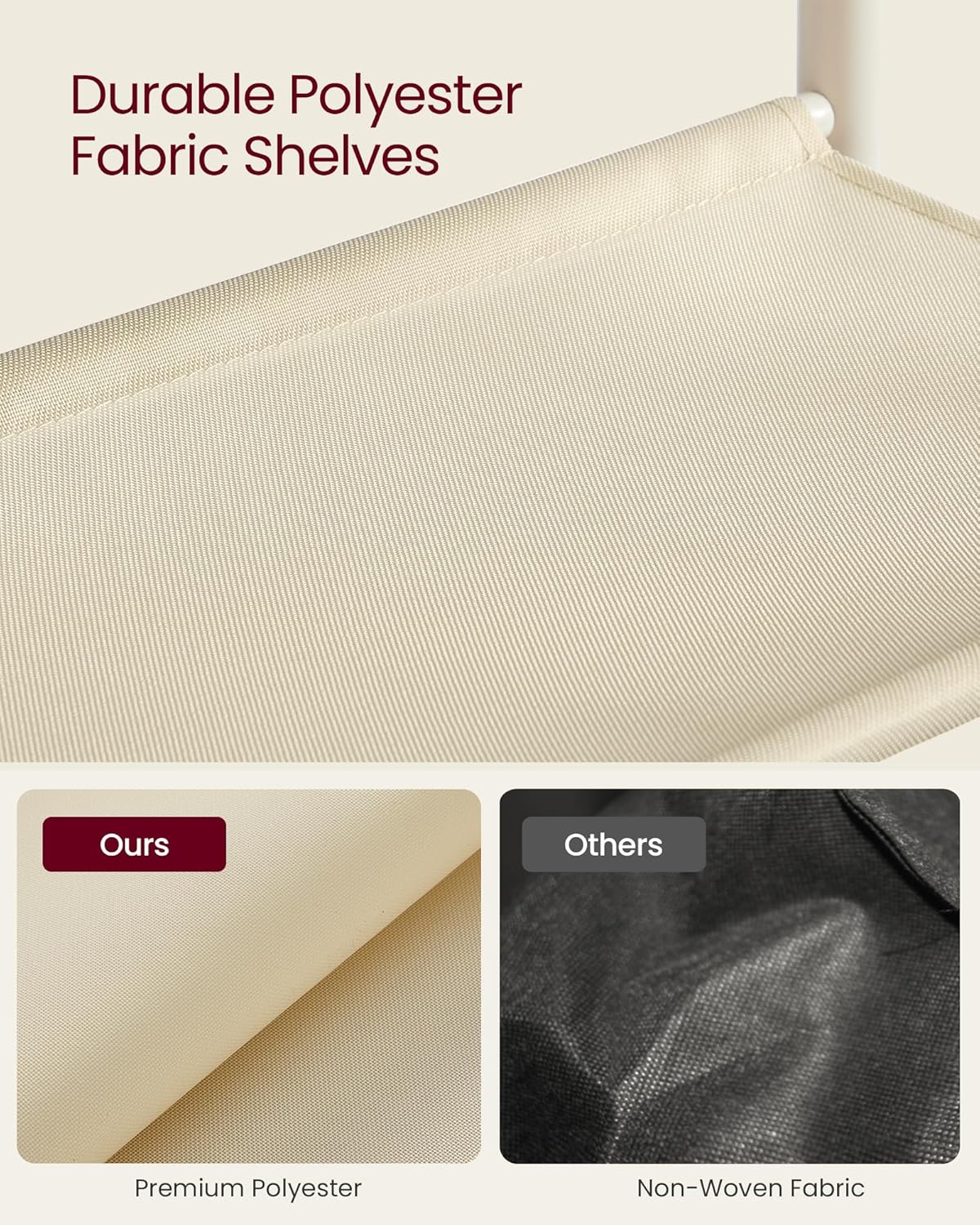 VASAGLE Shoe Rack, 4-Tier Shoe Storage Organizer for Entryway and Closet, Holds 9-12 Pairs of Shoes, 3 Fabric Shelves, Steel Frame, Modern, Natural Beige and Pearl White ULBS035K01