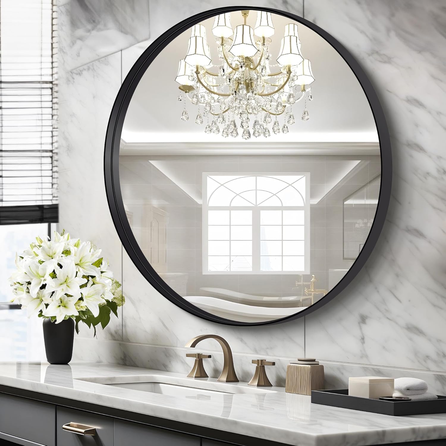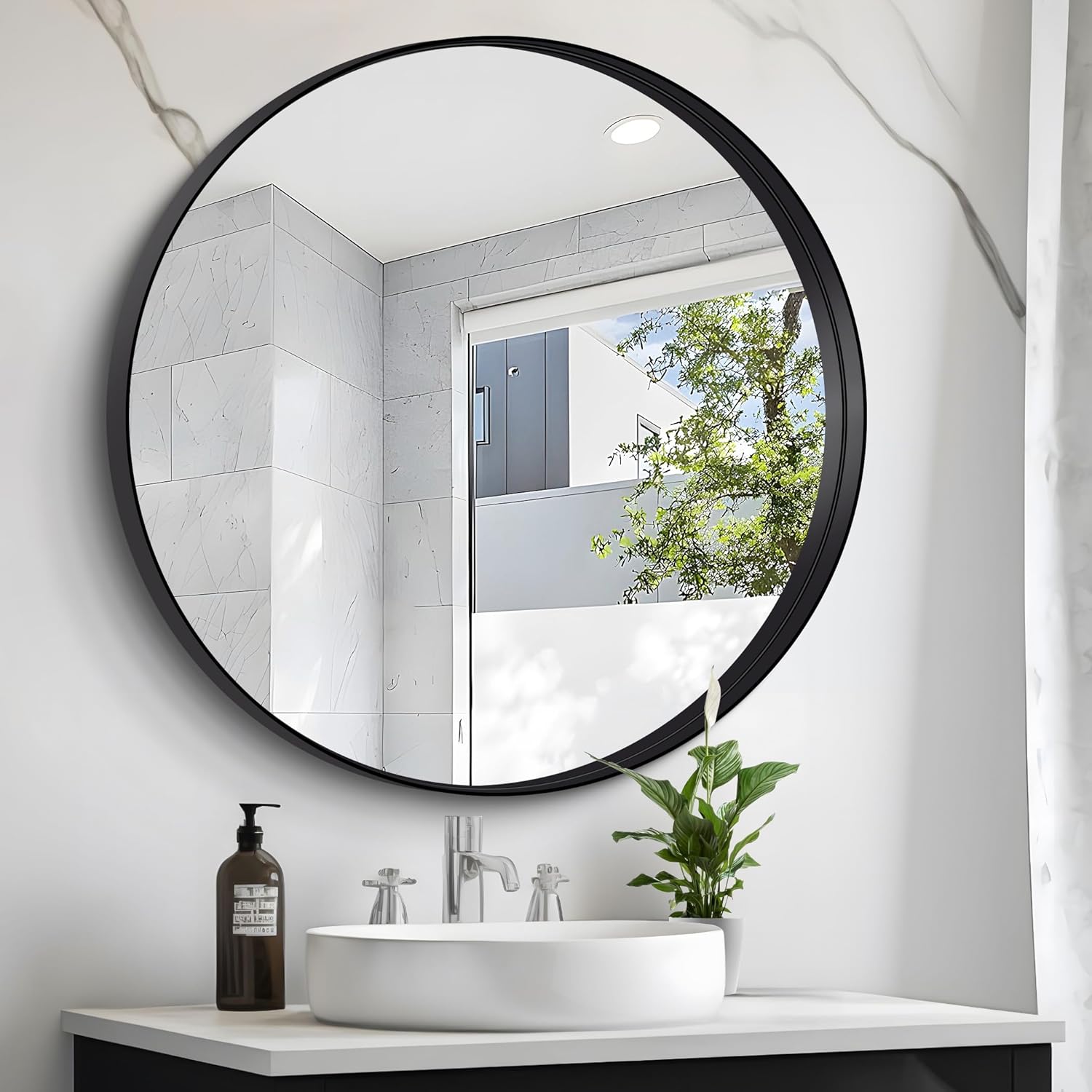 - SMOOTH ROUND MIRROR: The black mirror features an smooth round design that adds a soft aesthetic to the space. Make your whole room stand out. The dimensions of this round bathroom mirror are 36 inch, perfect size for you to get a large view.