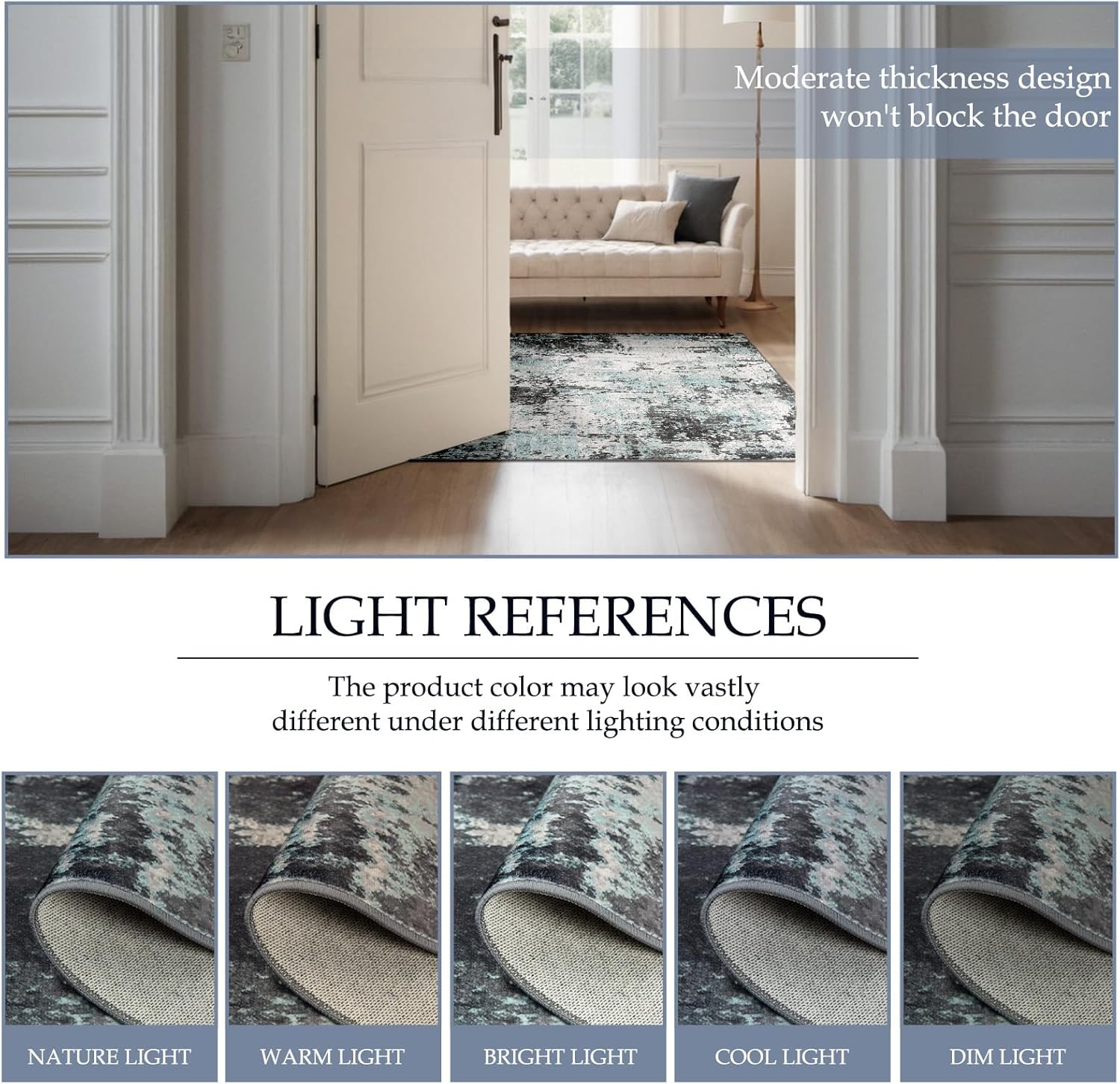 - Tides Series – Effortless style that flows with your life.This modern machine-washable non-slip rug features reinforced edges and a low-pile design that resists dirt. Its water-repellent surface makes spills easy to clean - liquids bead up for quick wiping. Simply machine wash in cold water (no bleach) to refresh. The non-slip backing keeps it securely in place. A perfect blend of function and contemporary design for active homes.
