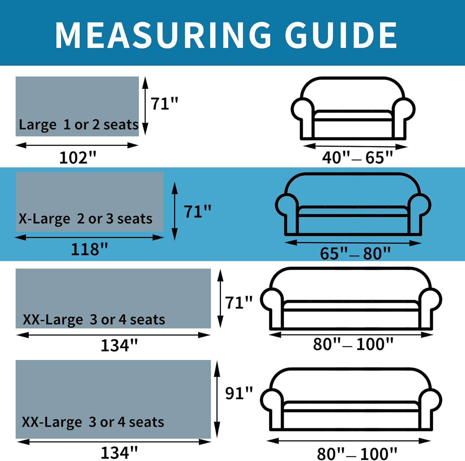 - SIZE CHOICE: Please measure your furniture size before choosing couch covers for sofa, size 71 "x 102" is suitable for single or small loveseat, size 71 "x 118" is suitable for loveseat or small 3 seat sofa, couch blanket cover size 71 "x 134" is suitable for 3 seat or small 4 seat sofa, size 91 "x 134" is suitable for couch covers for oversized sofa, couch covers L Shape allows you to choose 2 pieces of sofa cover,please refer to the measurement in the picture 5 for details Guide.