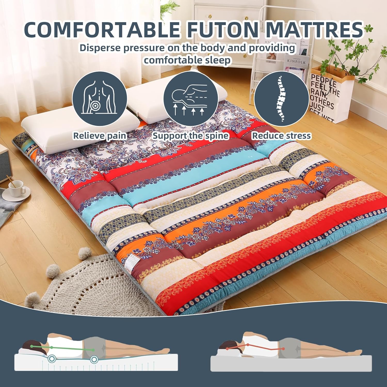 - ăMulti-Purpose MattressăYou can use it as a sleeping mattress, mattress cover on the bed, a Japanese futon mattress in the bedroom, a yoga mat, an outdoor camping mattress, a makeshift bed for guests or a play mat for your kids, etc,. Our Japanese futon mattress is perfect for both kids and adults.