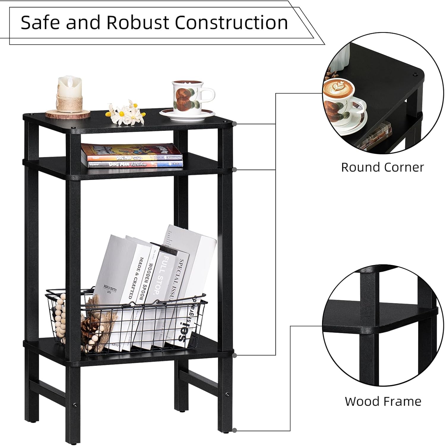 - Space-saving 3 Tier Storage: This 3 tier small side table, measures 11.81"D x 15.75"W x 27.56"H, is perfect for use as a side table or nightstand in a narrow space. The side table is not very spacious but still has enough room to add a lamp, picture frames, coffee and magazines to the top panel, where you can enjoy a short relaxation with a cup of coffee or tea, while the middle and lower tiers can help you organize more essentials