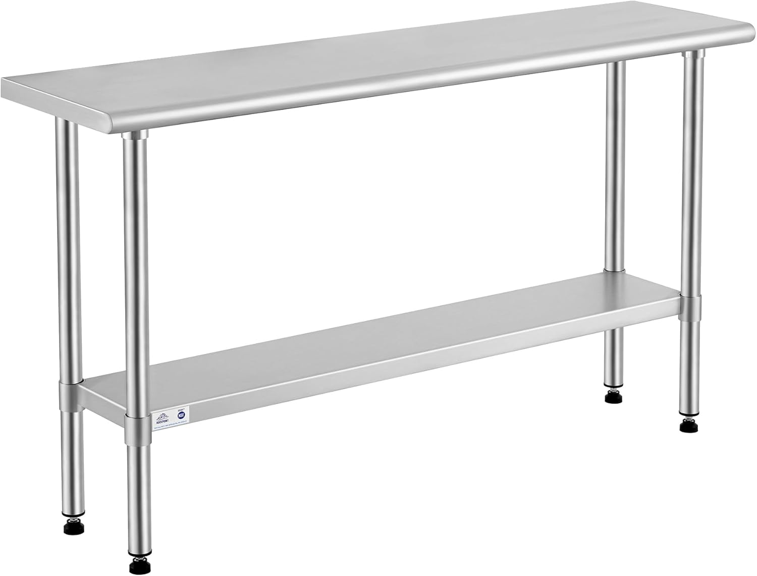 ROCKPOINT Stainless Steel Table for Prep & Work 14x60 Inches, NSF Metal Commercial Kitchen Heavy Duty Table with Adjustable Under Shelf and Table Foot for Restaurant, Home and Hotel