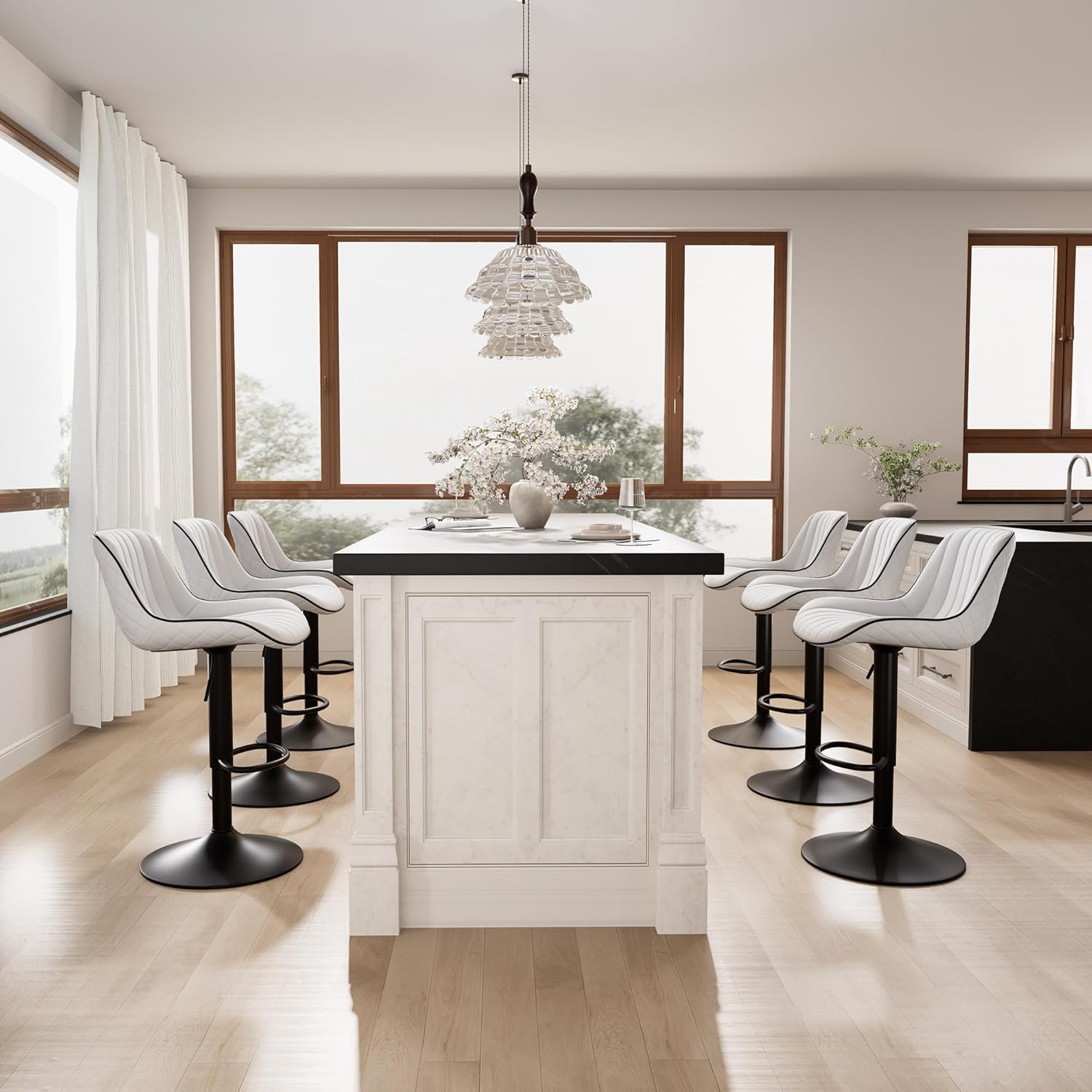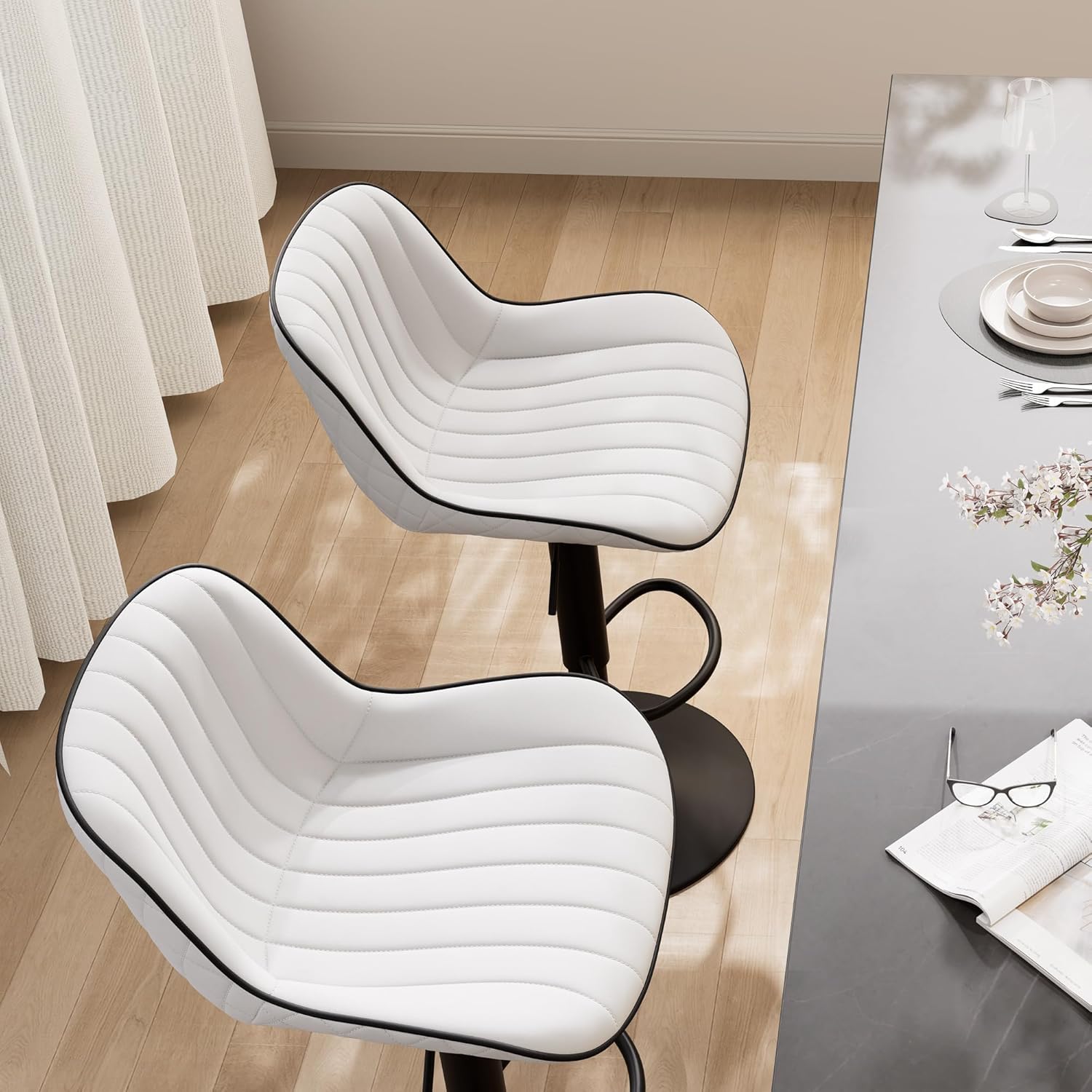 YOUNIKE White Bar Stools Set of 2 Kitchen Counter Height Barstools Upholstered Swivel Modern Faux Leather Bar Chairs with Backs Adjustable High Breakfast Island Stool with Metal Leg