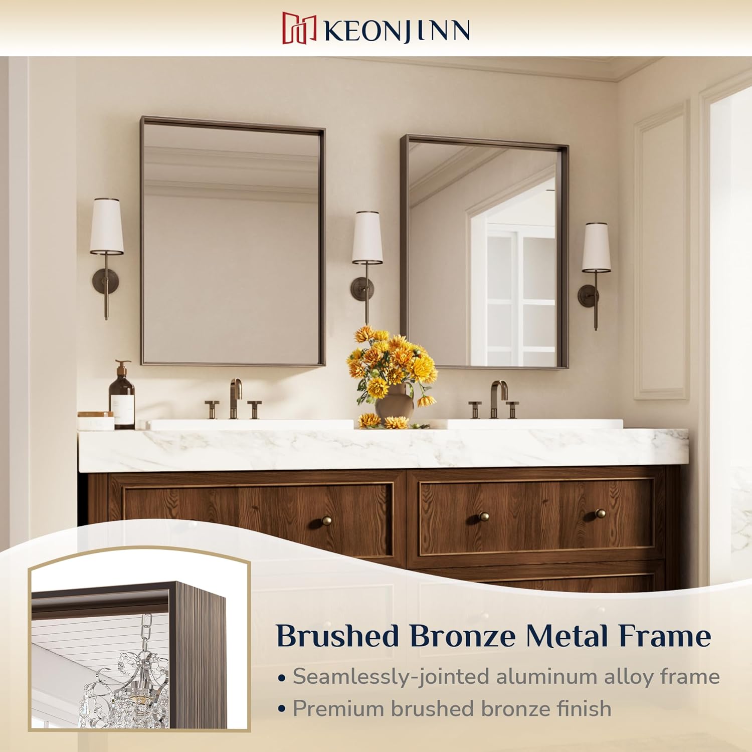 Keonjinn 24 x 32 Inch Brushed Bronze Mirror, Rectangle Bathroom Vanity Mirror for Wall, Aluminum Alloy Framed, Modern Farmhouse, Rectangular Square Corner, Decorative(Horizontal/Vertical)