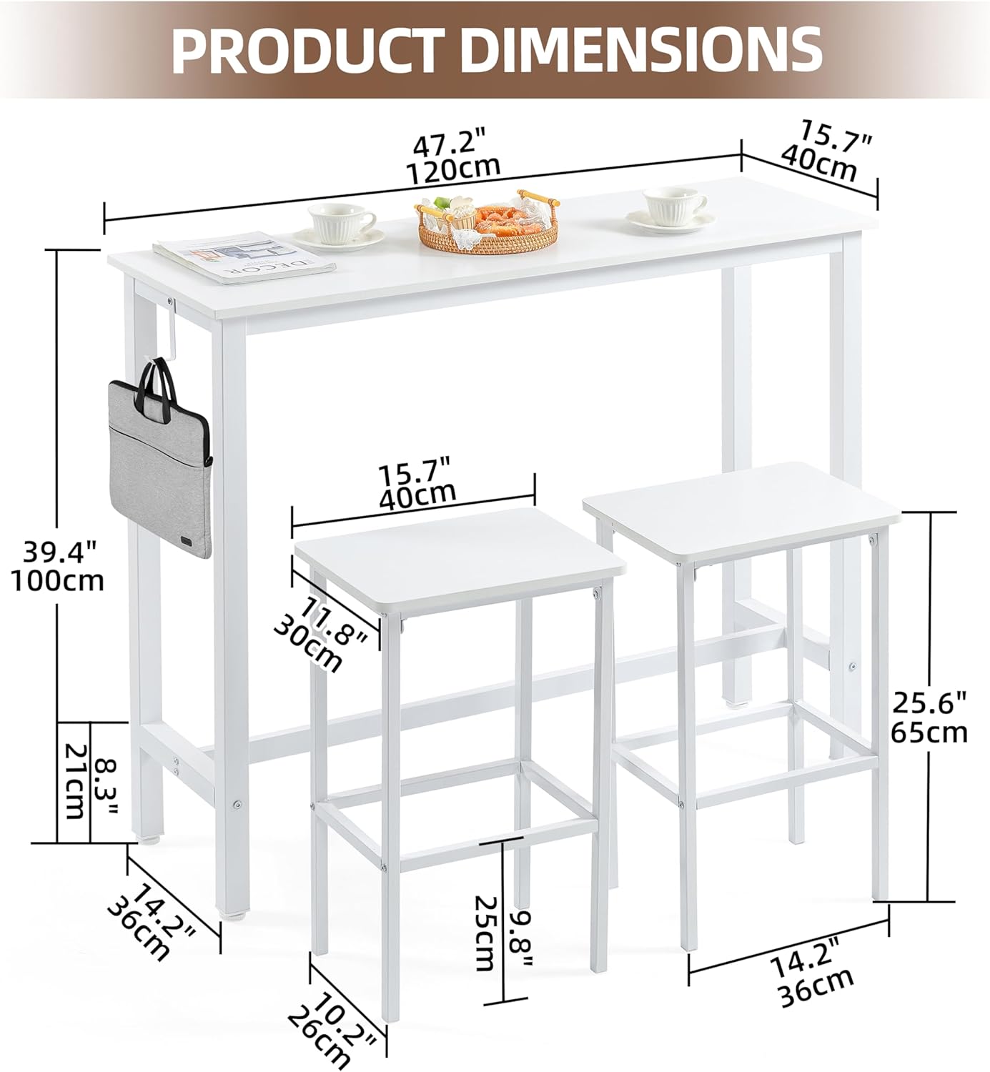 - 【Sturdy Long-Lasting】: 47inch Rectangular Bar Table With Thickness Of 1.57inch X 1.57inch White Legs, The Height Is 40 Inch. Made Of P2 Compliant Mdf Table Top With A Thickness Of 1 inch And Metal Stand, The Rust-Resistant Stand Features An Anti-Skid Rubber Ring At The Bottom For Added Stability.
