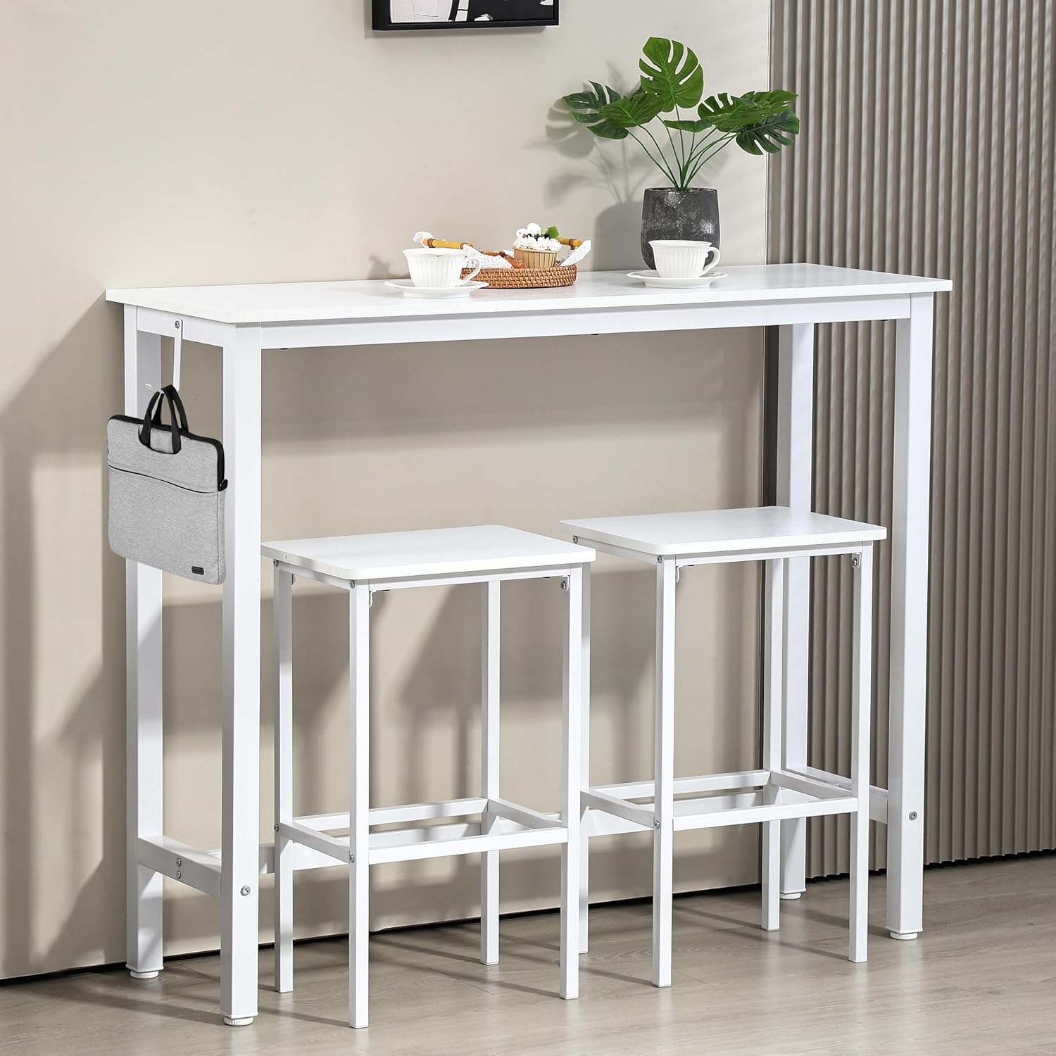 Finnhomy 47" Industrial Bar Table Set with 2 Stools - Counter Height Dining & Pub Table for Small Spaces, Kitchen, Apartment, Breakfast Nook - Metal & Wood, Space-Saving Furniture - White