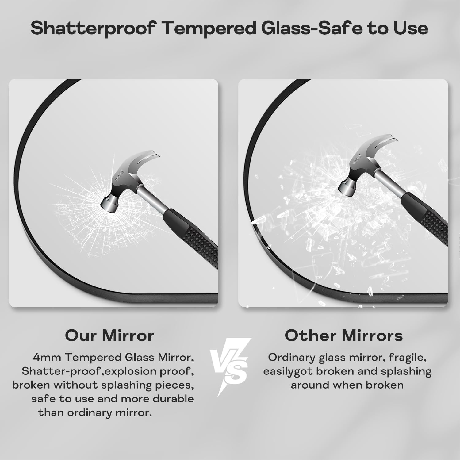 - High-Definition mirror: The black bathroom vanity mirror adopts high-definition imaging technology, which is as clear as crystal, ensuring that the imaging at all angles and distances will not be deformed and blurred, showing its true beauty. And the arched bathroom mirror uses 4MM Tempered Glass, can effectively prevent damage during transportation