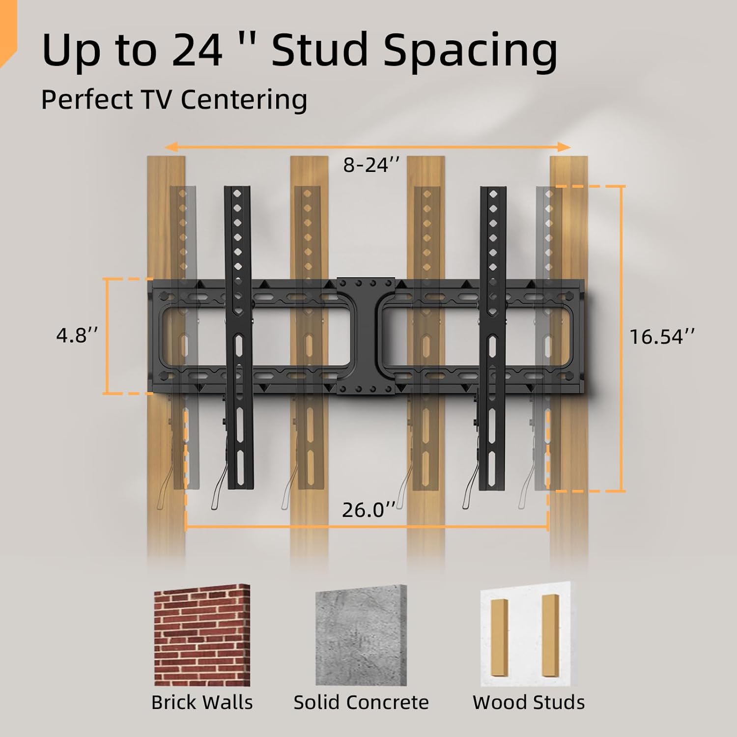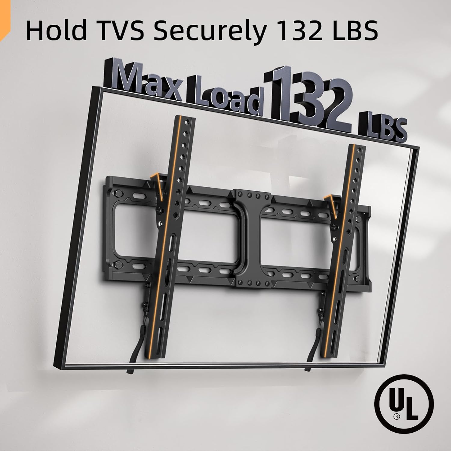 - [Sturdy and Safe] You can relax knowing your TV is securely mounted to the wall with this UL-certified TV wall mount, which holds up to 132 lbs without a hitch. Its solid design keeps your TV steady, no wobbling or slipping here! Plus, we’ve got you covered with 10 years of support for this product.