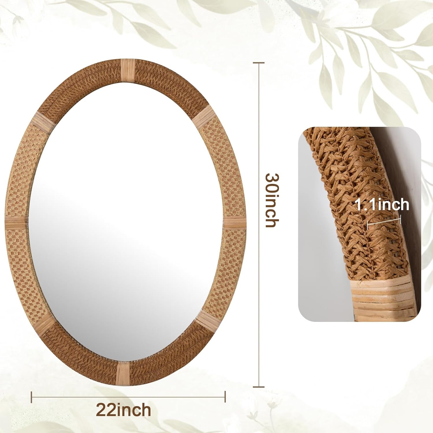 - Dimensions: The 22x30 inch oval rattan mirror is the best choice for indoor wall decor, this mirror is lightweight easy to hang, our farmhouse mirrors for bedroom offer both functional and decorative value, making them the perfect hanging mirror for wall