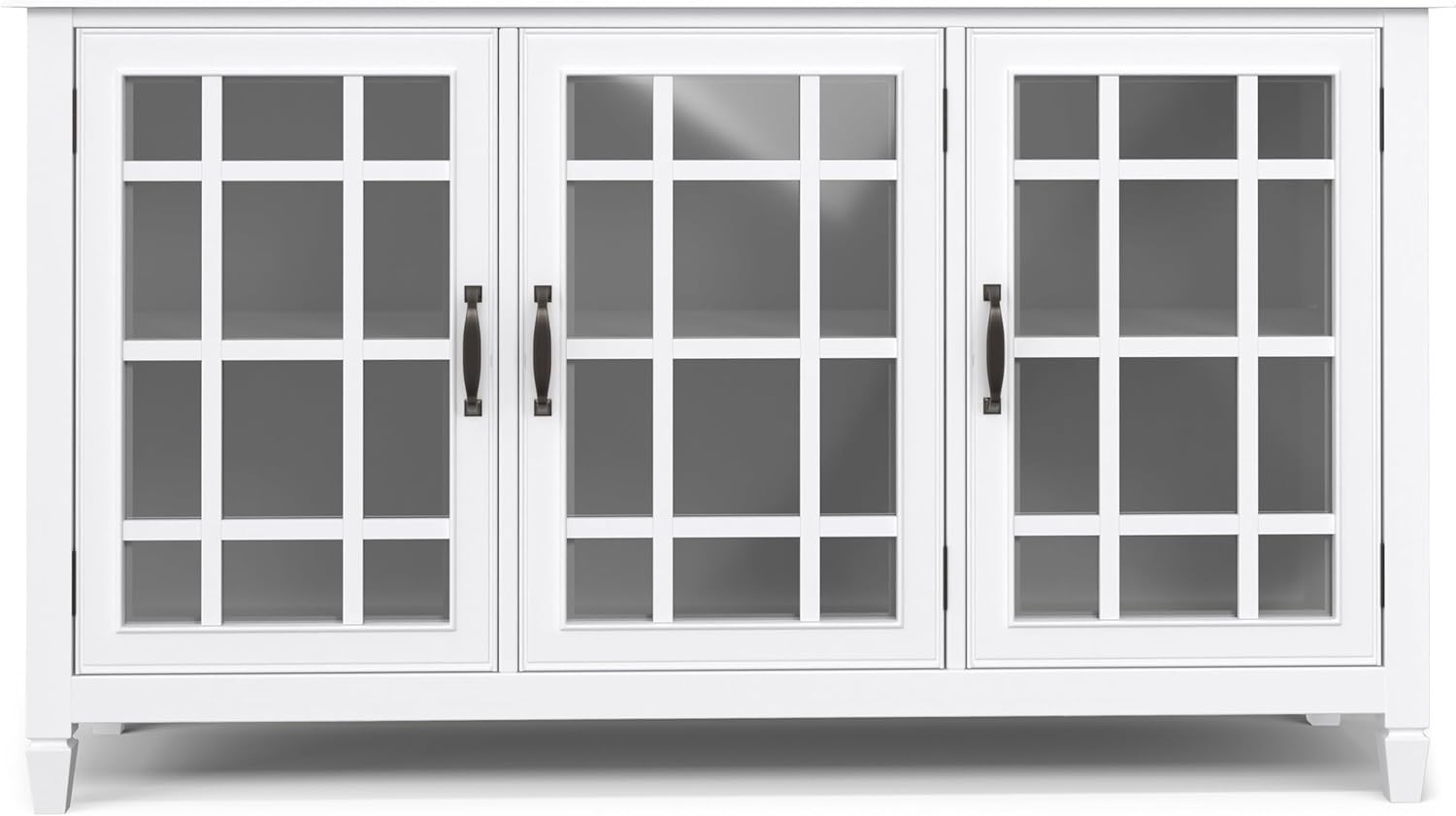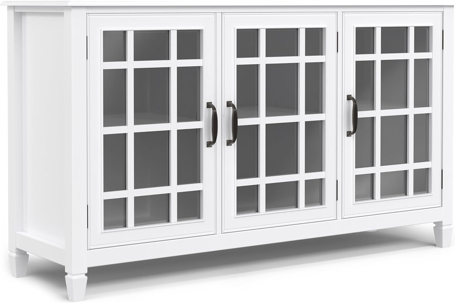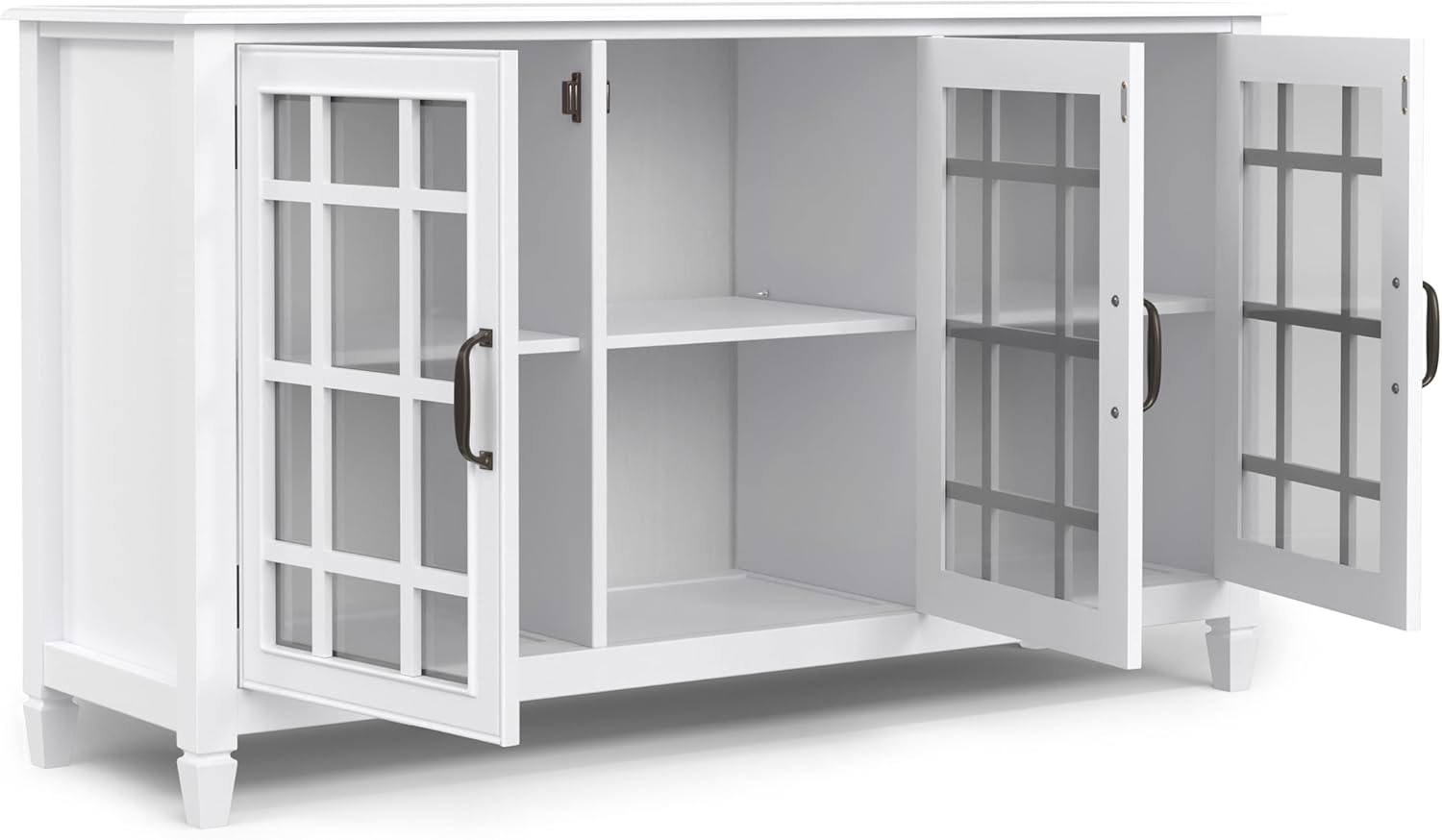 SIMPLIHOME Connaught SOLID WOOD 60 inch Wide Traditional Wide Storage Cabinet Buffet in White for the Living Room, Entryway and Family Room