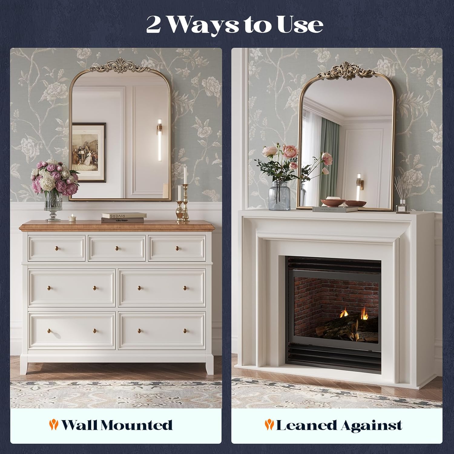 - Luxury Design: Unique vintage carvings on premium MDF paired with an antique brass gold metal frame create a royal and sophisticated look, making each arched mirror a timeless artwork