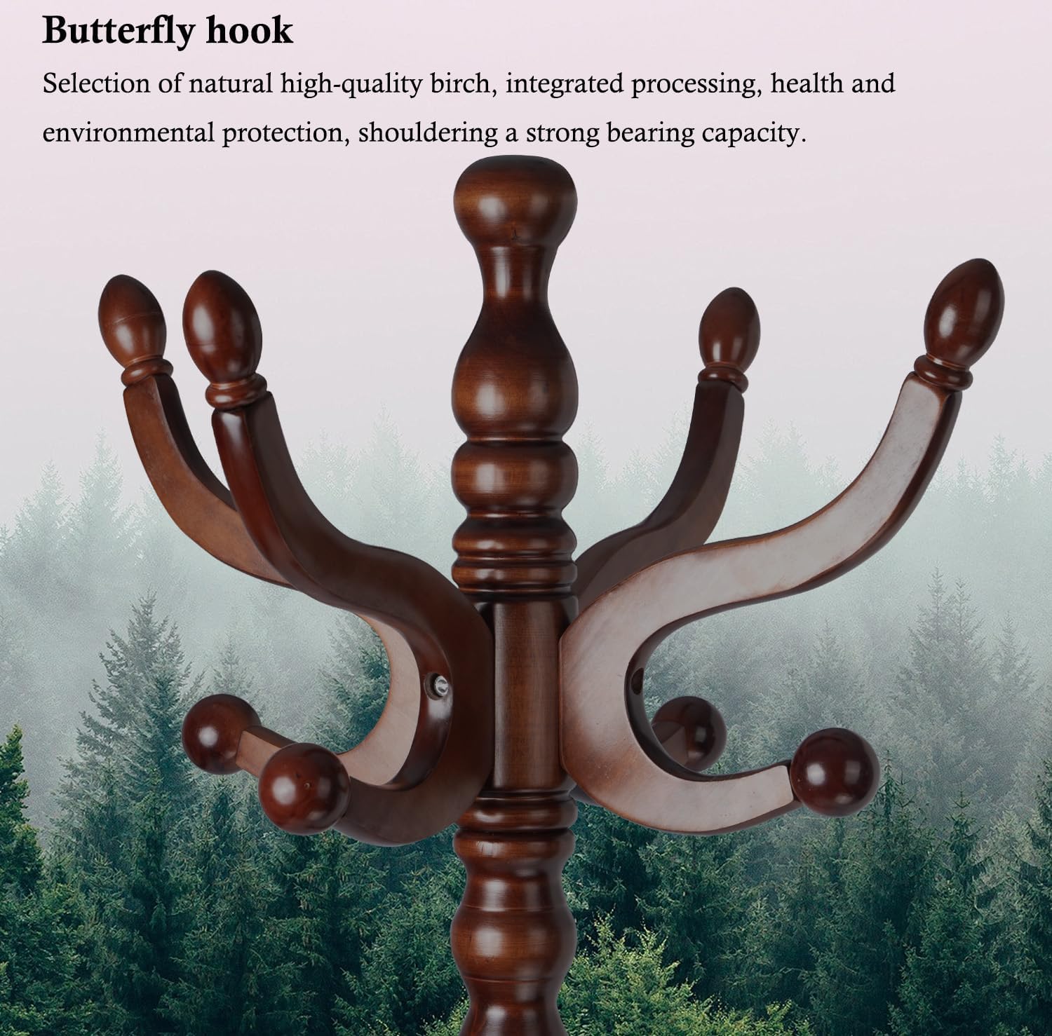 - 【Wider Application】The wooden coat tree is designed in a vintage style, with a simple structure and comprehensive functions. The coat rack can be placed in the hallway, living room, bedroom, office, and any corner you need. The wooden coat tree stand adopts an embedded screw design and is connected to the main pole, and the full-tooth screw is connected to the chassis. Equipped with installation tools and instructions, you can easily complete the installation.