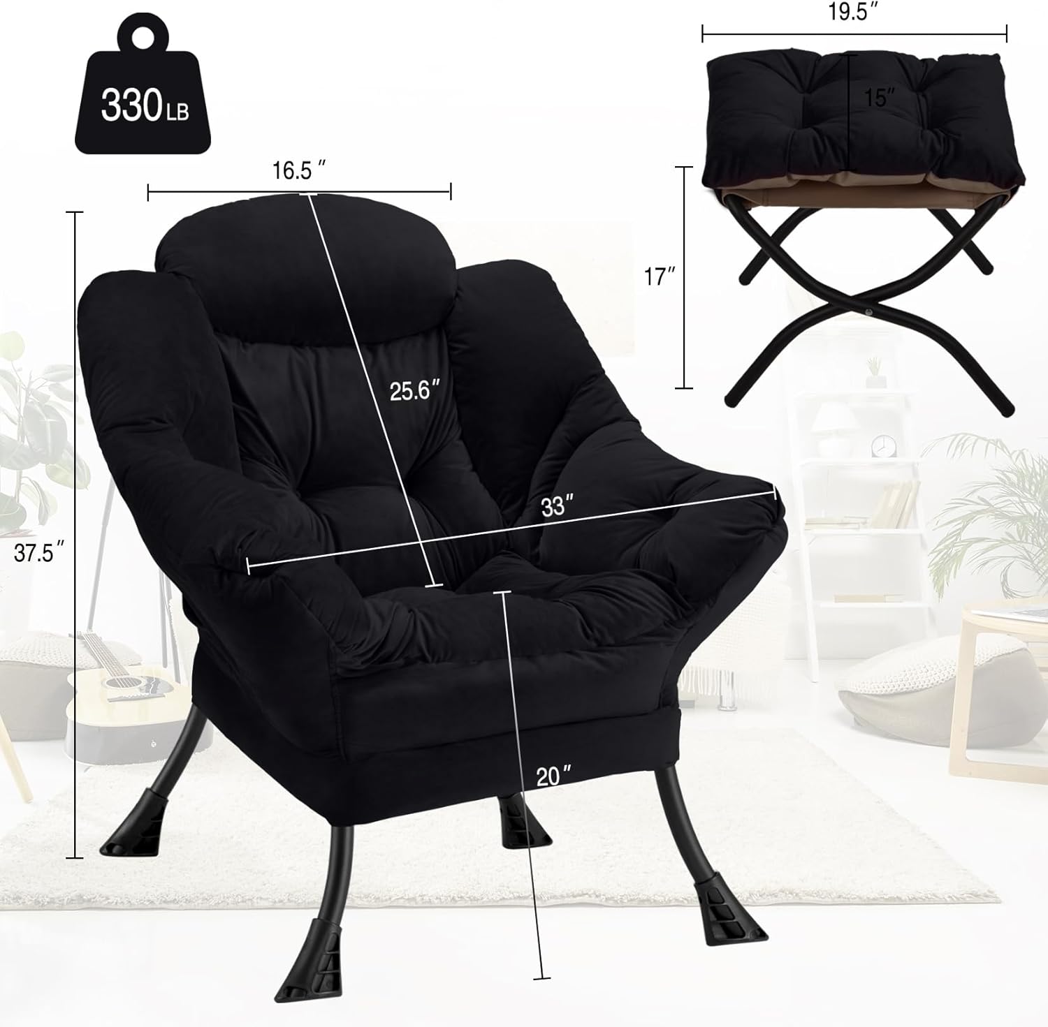 Lazy Chair with Folding Ottoman Modern Large Accent Chair,Contemporary Lounge Leisure Sofa Chair with Armrests Upholstered Sofa Armchair Reading Chair for Bedroom,Dorm & Office(Black-f)