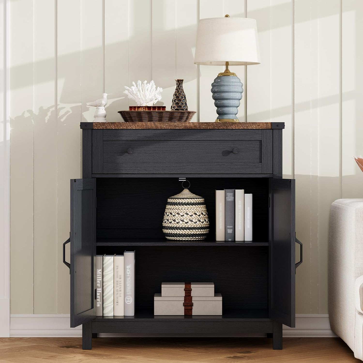 ChooChoo Kitchen Storage Cabinet, Coffee Bar Cabinet, Farmhouse Buffet Sideboard with Drawer for Kitchen, Living Room, Black