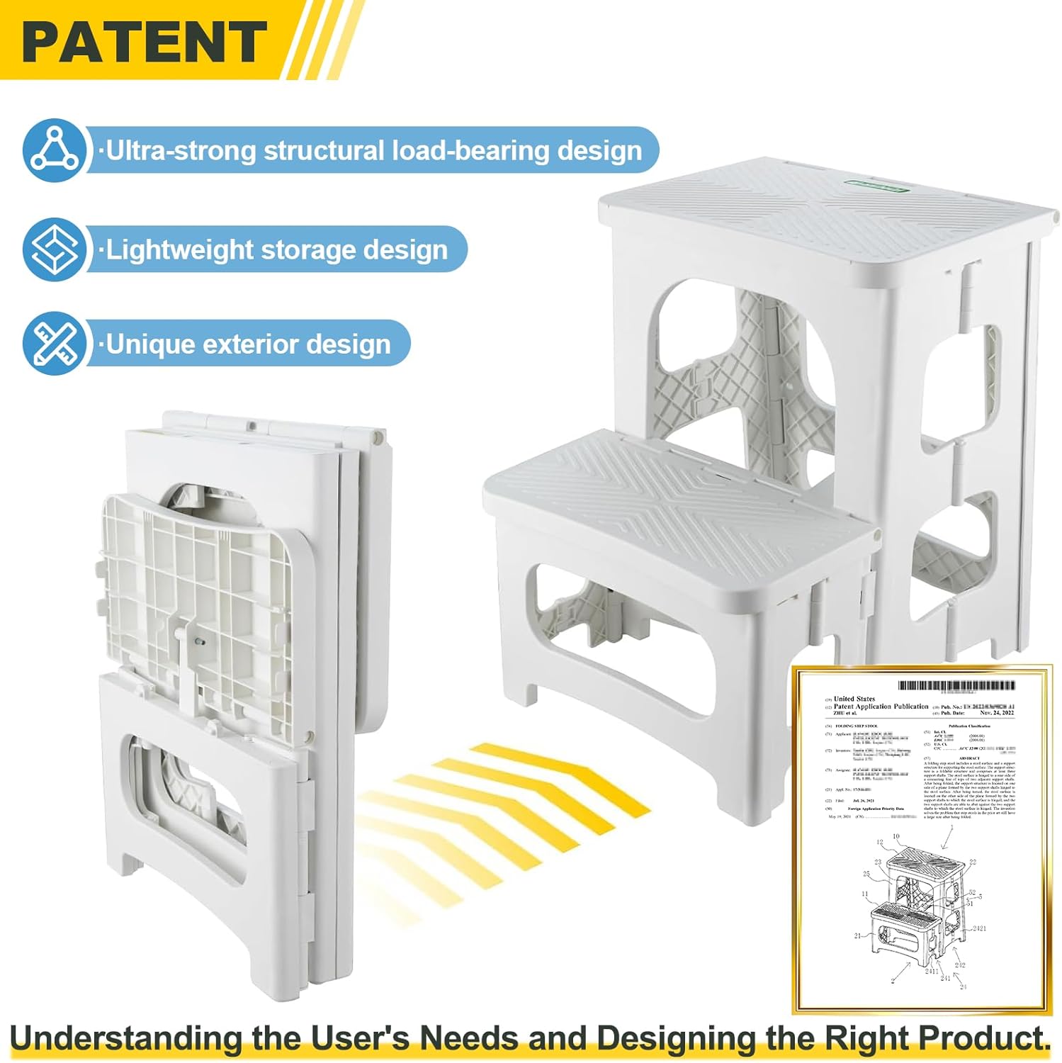 - 【Foldable Stool】 Our secondary stool can be easily opened and folded.The measurements of the folding 2-step stools are 15.4" W x 13.2" D x 8" H(1-step) x 17" H(2-step),Hold up to 300 lbs. The stool is structurally designed to allow adults,seniors,children and toddlers to reach different heights.