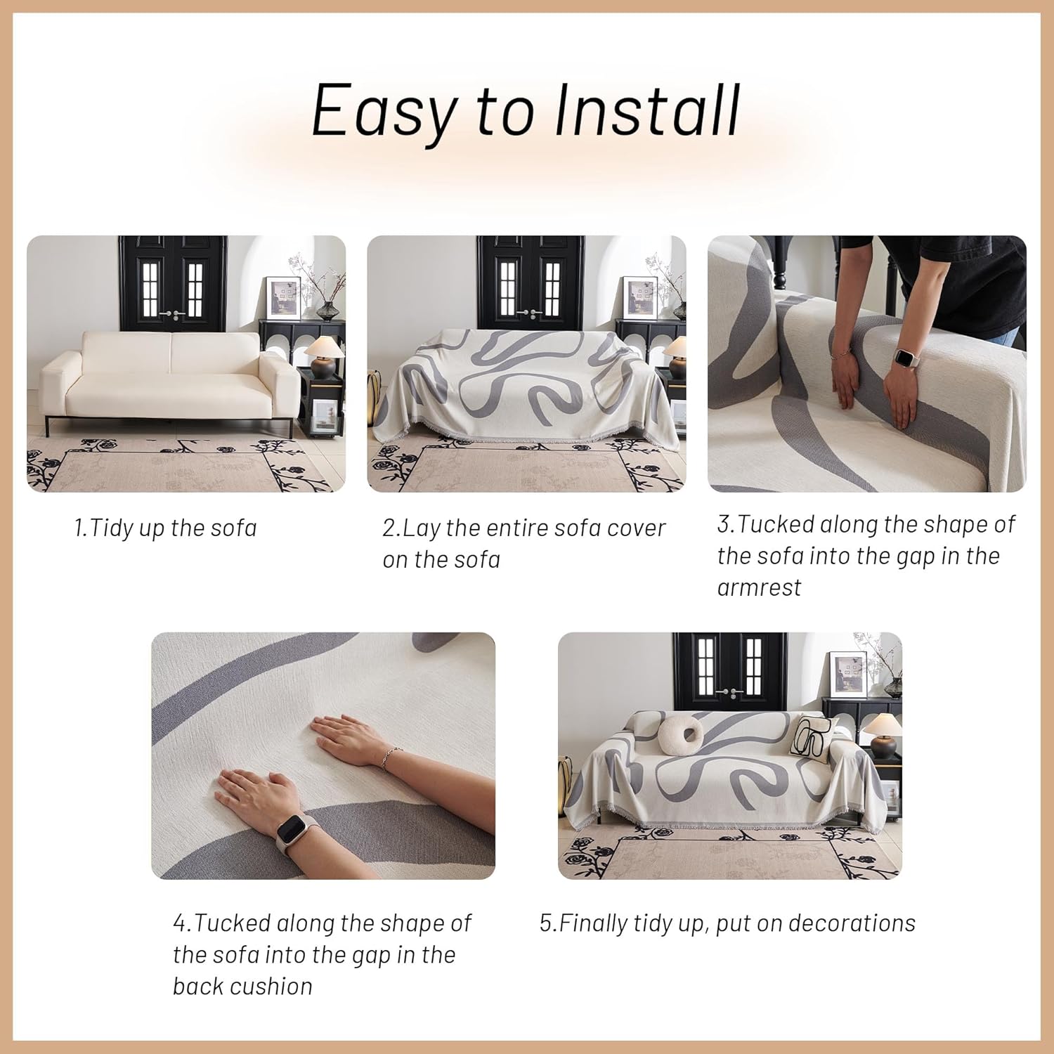 - Feature: Modern and classic style, lace or tassels edge designs could be selected according to your preference. No complicated installation is required. No limit on sofa covers, easier installation than stretch sofa slipcovers.