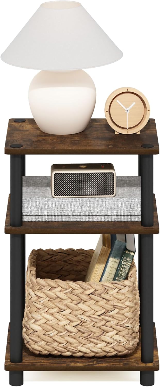 Furinno Just 3-Tier Turn-N-Tube End Table, 1-Pack, Amber Pine/Black