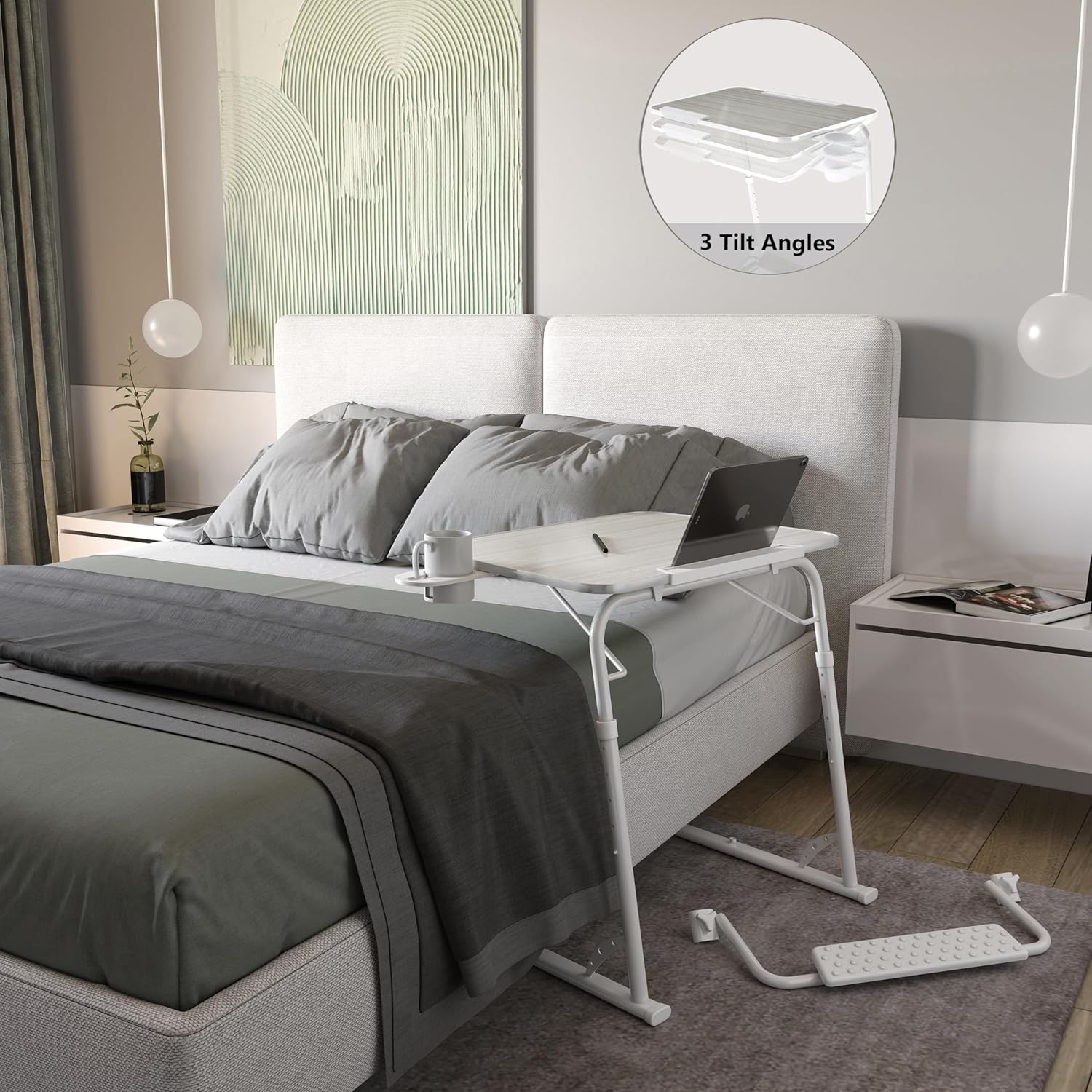 FoldWise Upgraded Folding TV Tray Table - Extra Large & Sturdy Laptop Table for Couch, Height & Angle Adjustable Desk for Dinner, Work & TV - Includes Footrest, Cup Holder, iPad Holder & Edge Stopper