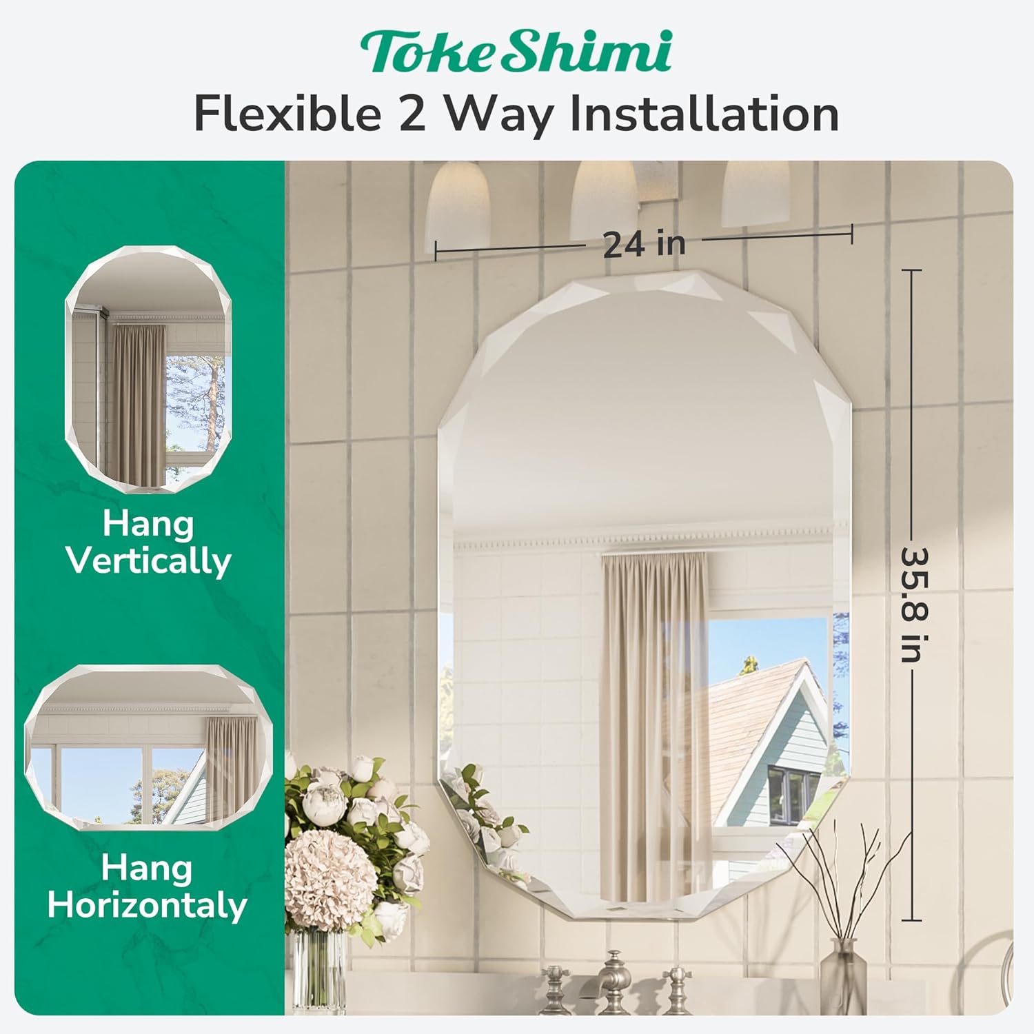 - Exquisitely Beveled Design: The brick beveled edge of this frameless decorative mirror for bathroom is a true masterpiece, catching the eye with its unique charm. As light gently reflects off its surface, colors seem to dance and shimmer, infusing any room with a touch of luxurious elegance. Whether in the bathroom, living room, bedroom, or entryway, this irregular wall mirror is a perfect fit. Also, this mirror's frameless style integrates into any bathroom decor, from farmhouse to modern.