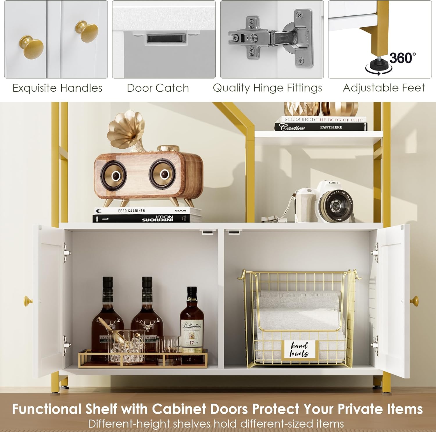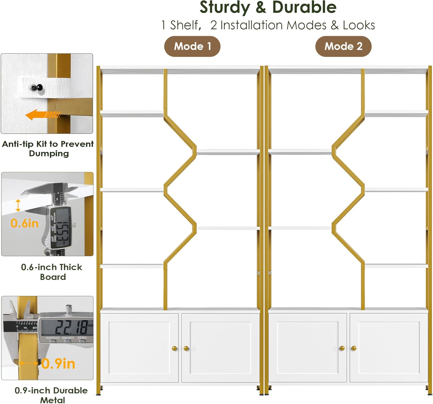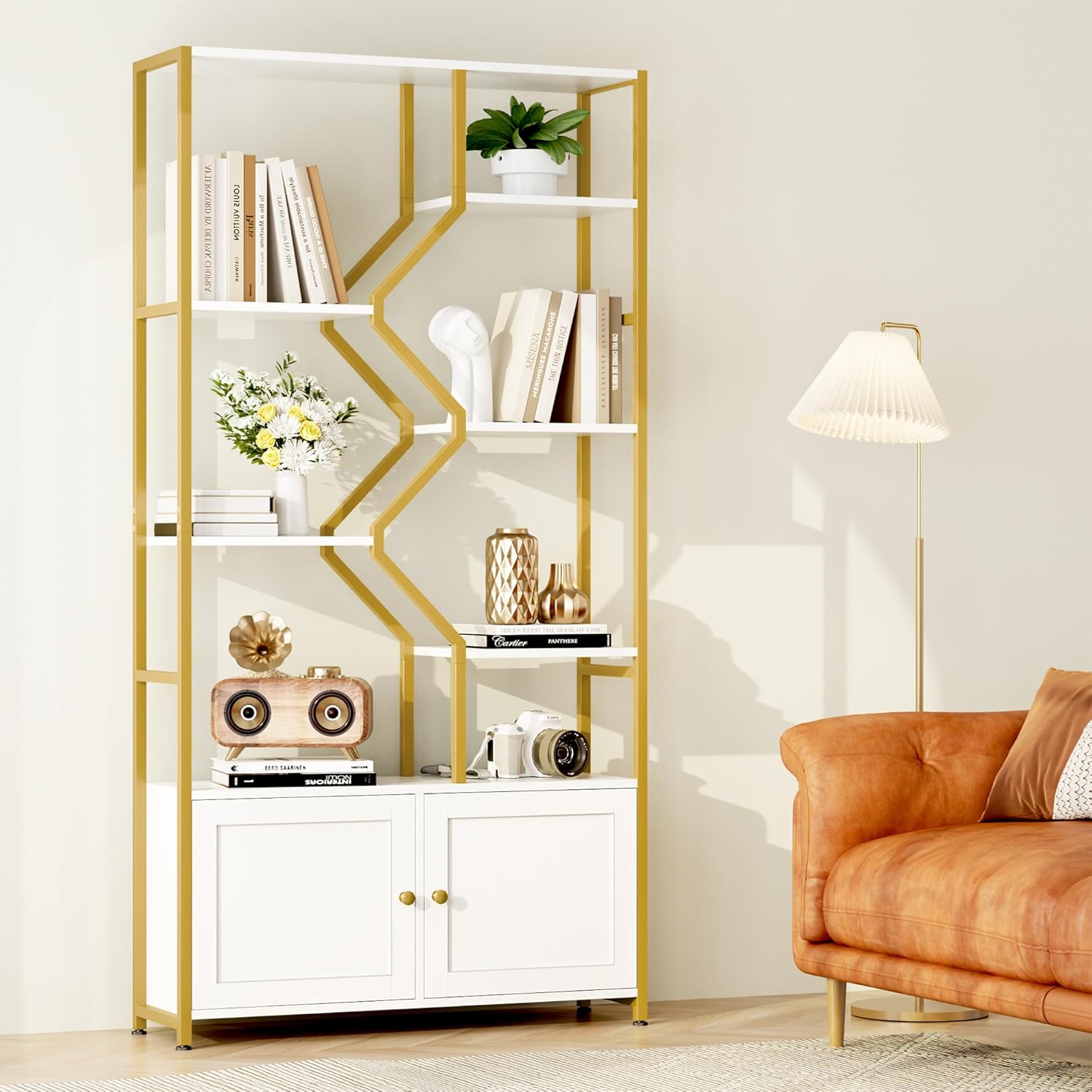 - Modern & Unique Design: This open bookshelf features a classic gold and white color, bringing a chic and stylish feeling to your space, easy to match with different decor styles, such as office/living room/kitchen/hallway/bathroom/bars. Decorate your life & create an outstanding space that you deserve