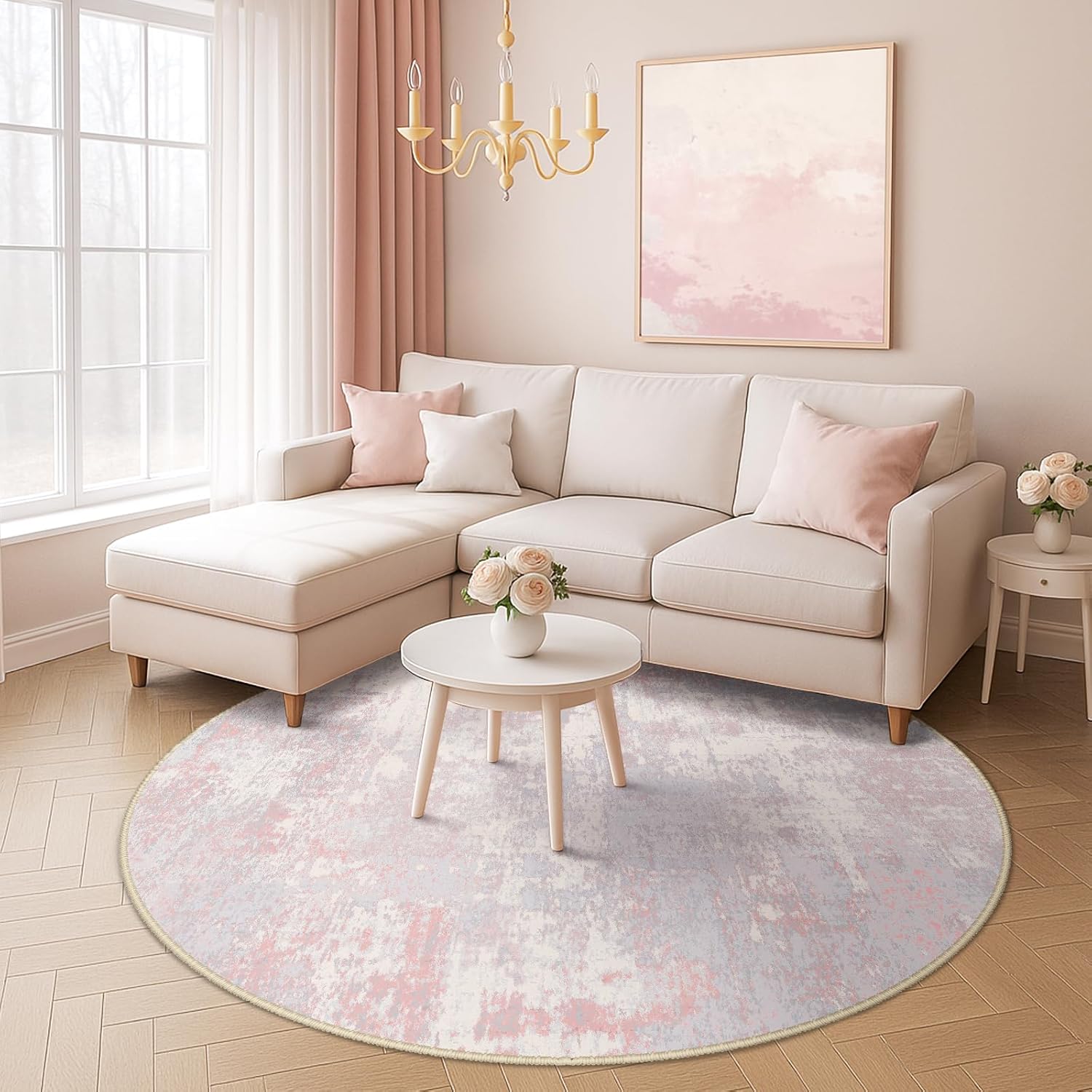 Washable Area Rugs 4ft Non-Slip Modern Abstract Soft for Living Room Entryway Bedroom Nursery, Print Pattern, Grey Pink