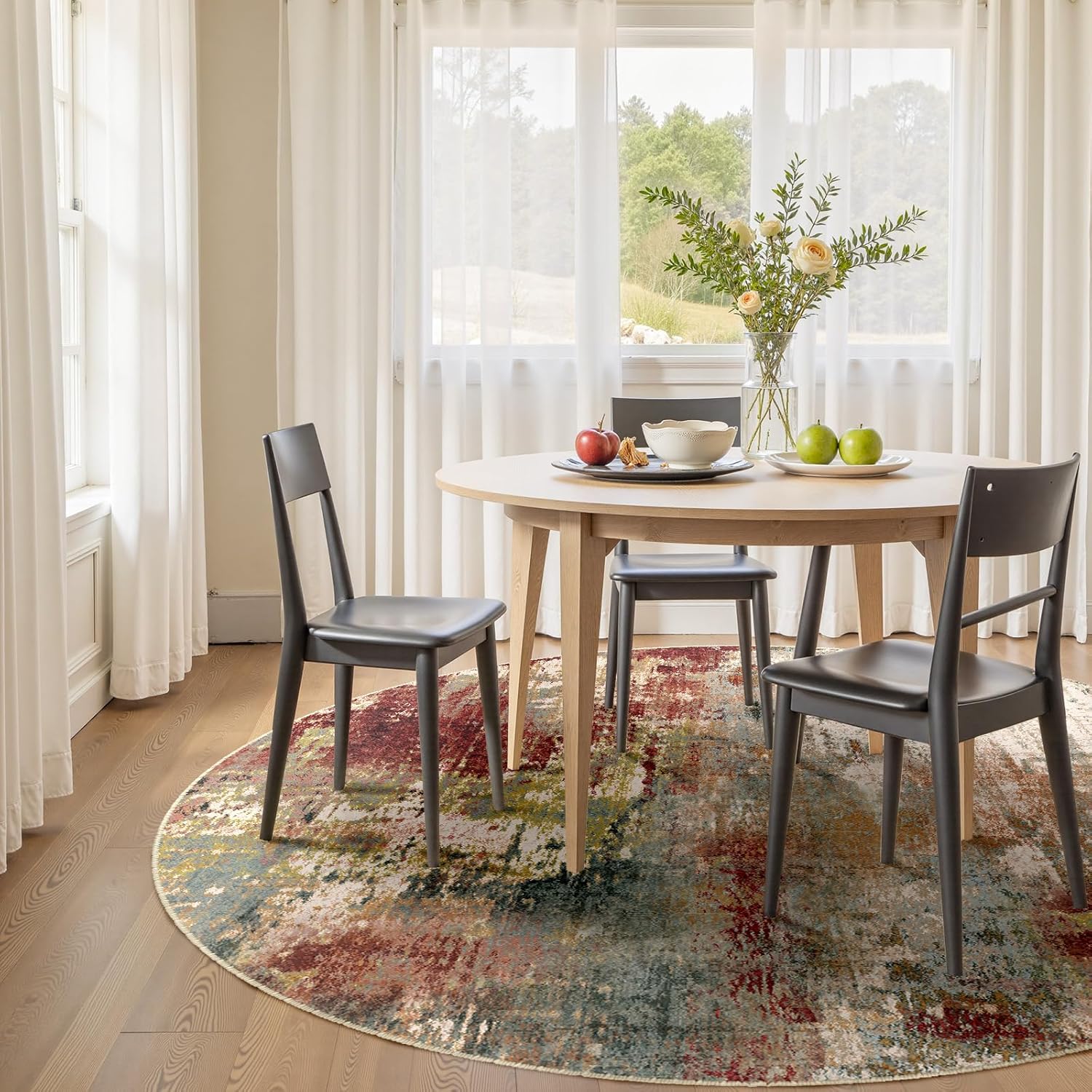 - Modern Abstract Rug Print Pattern Rug: The modern abstract aesthetic design is digitally printed, and the details can't be replicated by hand. It is a beautiful room decor that adds color to your home. The moderate thickness also allows this area rug to be easily placed behind the door without affecting the opening. You can place it anywhere you like, rugs for living room, rugs for dining room, kitchen, office, bedroom, laundry room, hallway, entryway etc.