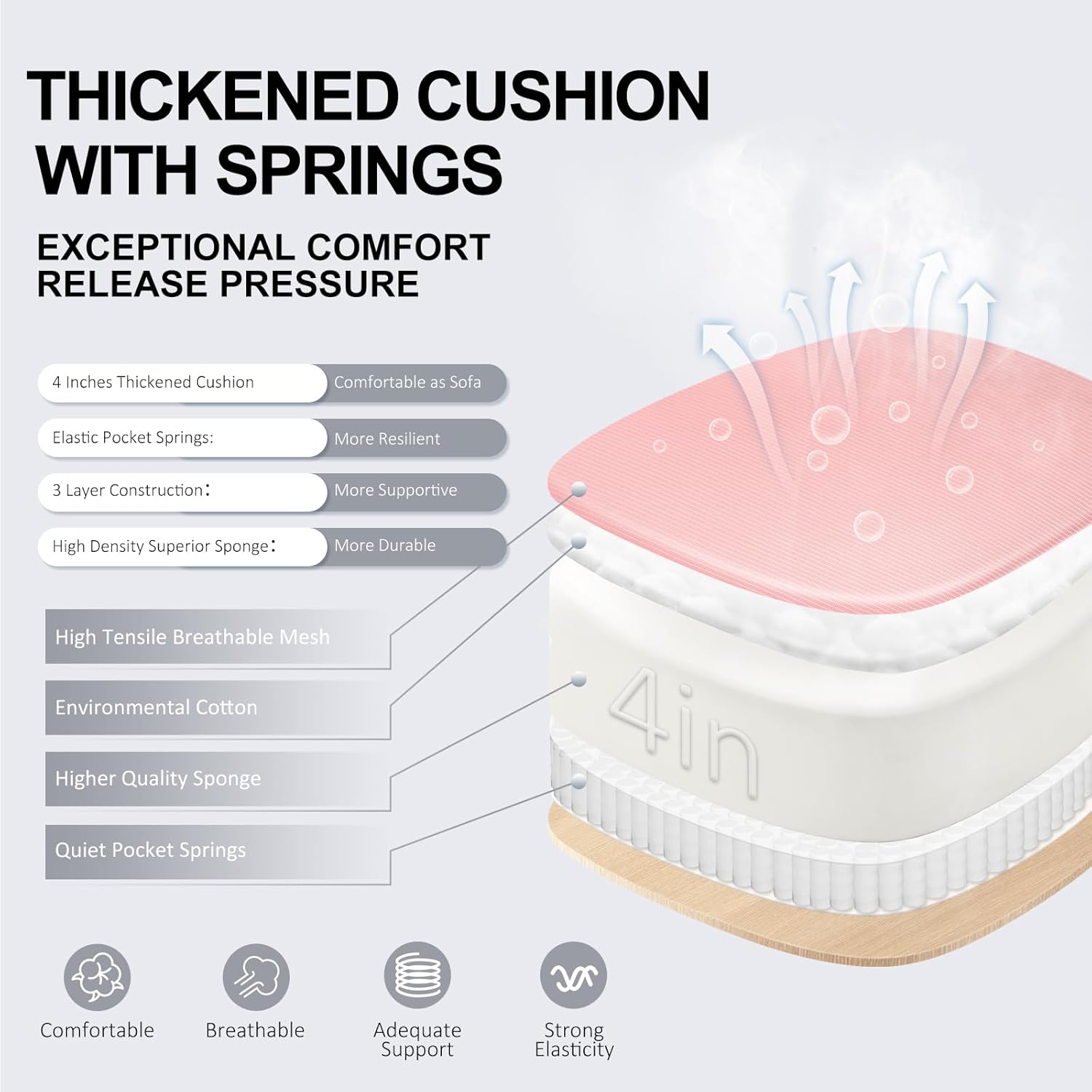 - Superior Cushioning: With a 4" extra-thick padded cushion made of high-quality supportive sponge and pocket springs, the chair provides ultimate comfort akin to a sofa, allowing you to work for extended periods without discomfort. The large 21.2" W x 20.5" D seat cushion accommodates different sitting positions.