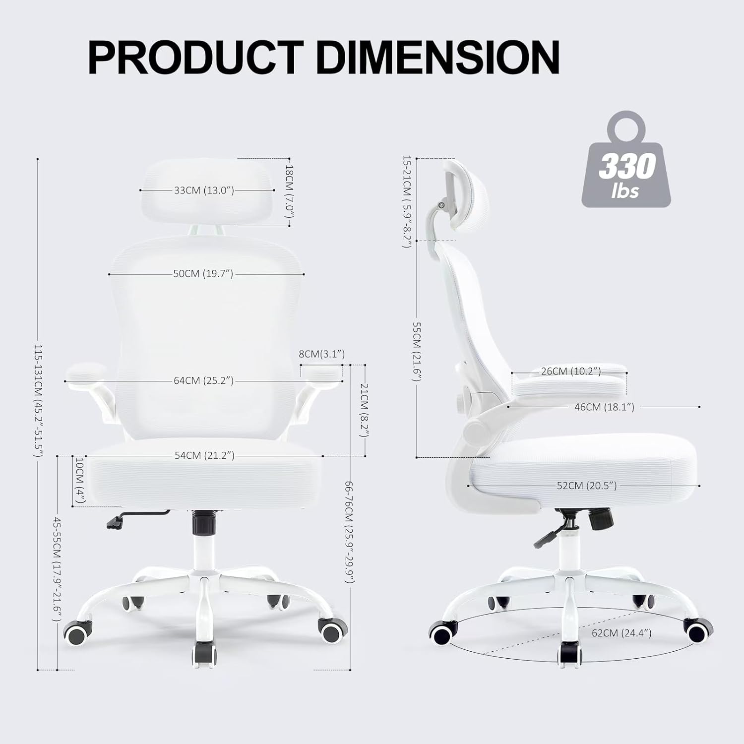 - Durable and Breathable: Constructed with a high-quality stainless steel base, SGS Level-3 gas lift cylinder, and reinforced explosion-proof tilt mechanism, this chair can support up to 330 lbs.360°smooth&silent wheels suitable for all types of floor. The skin-friendly and elastic mesh fabric ensures breathability, durability, and wear resistance while relieving body pressure.