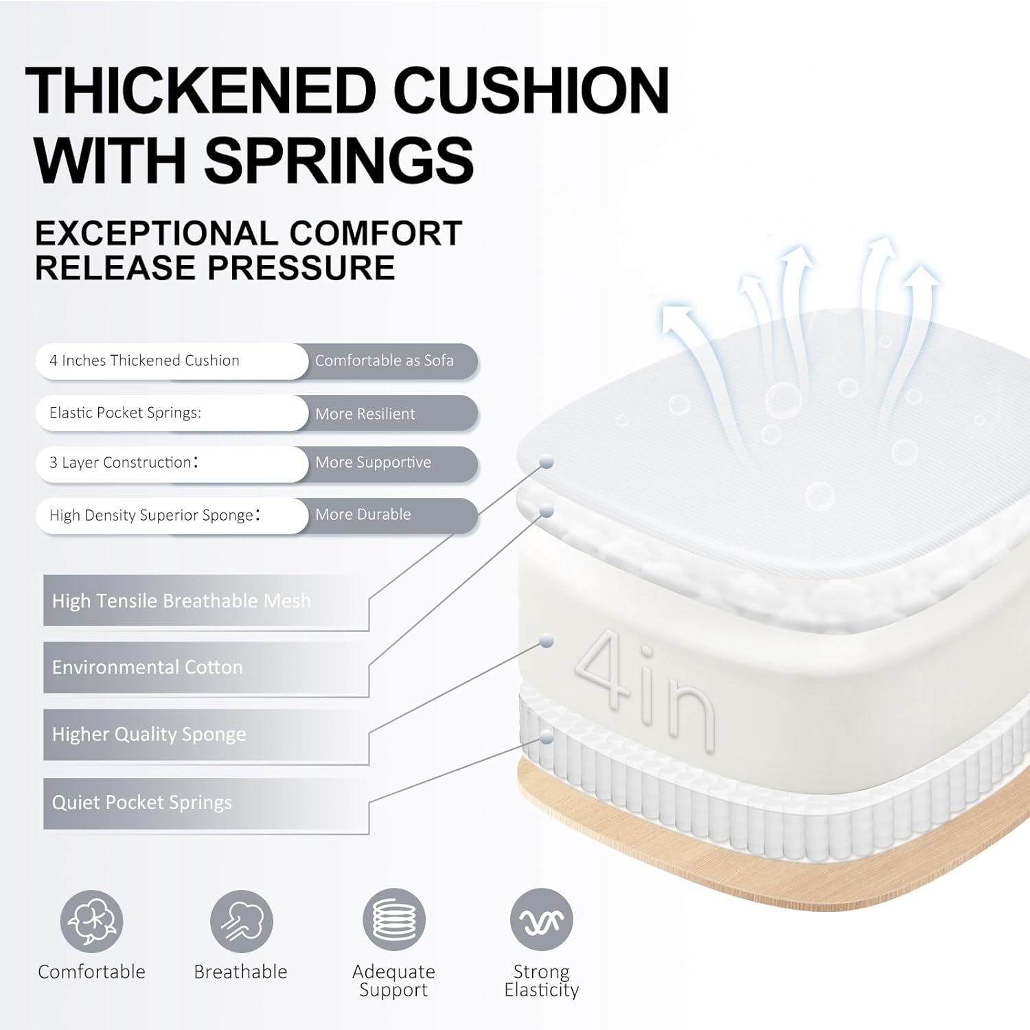 - Superior Cushioning: With a 4" extra-thick padded cushion made of high-quality supportive sponge and pocket springs, the chair provides ultimate comfort akin to a sofa, allowing you to work for extended periods without discomfort. The large 21.2" W x 20.5" D seat cushion accommodates different sitting positions.