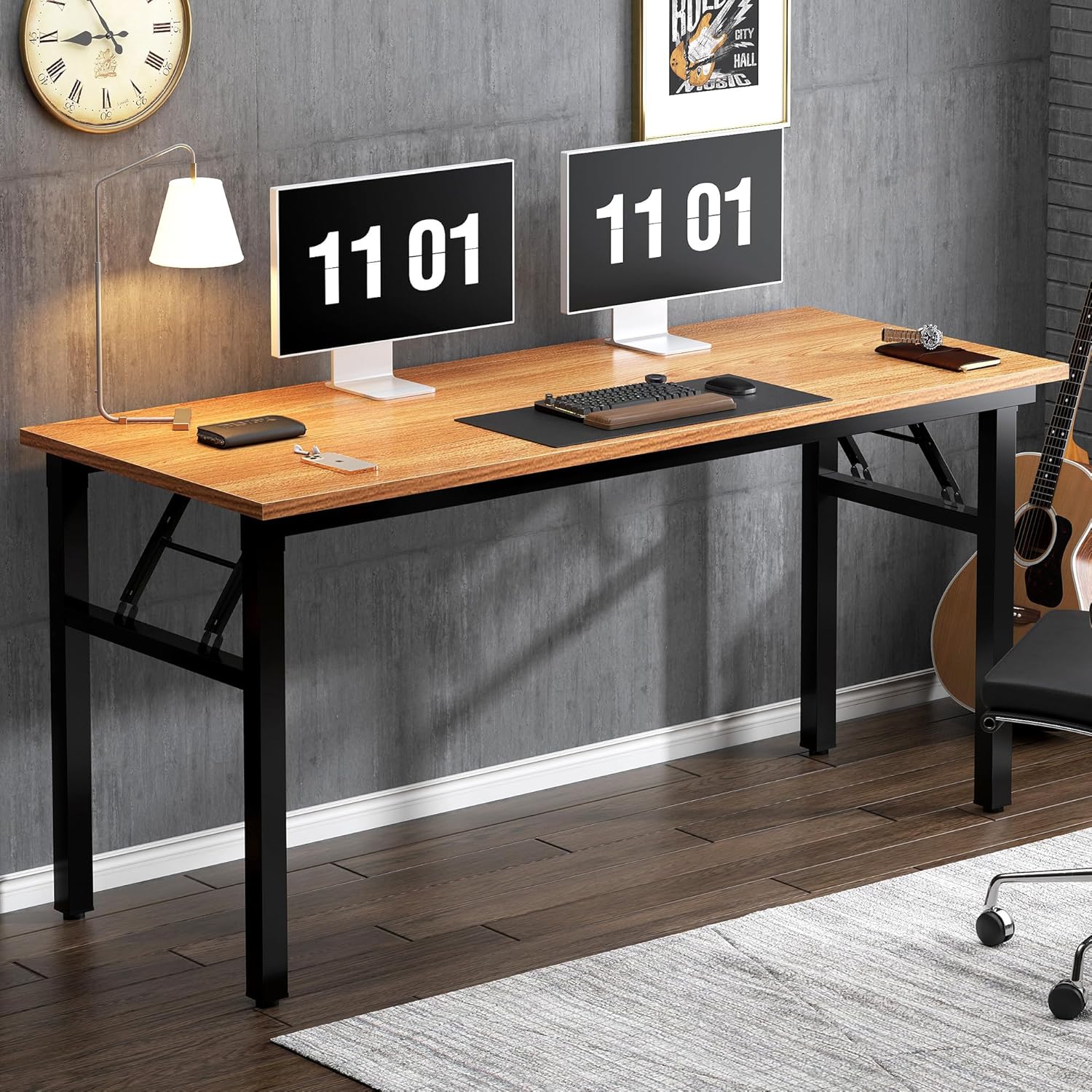Need Folding Desk, 54 inch Large Computer Desk for Home Office, No Install Needed Study Student Writing Table Desk Workstation, Teak Black
