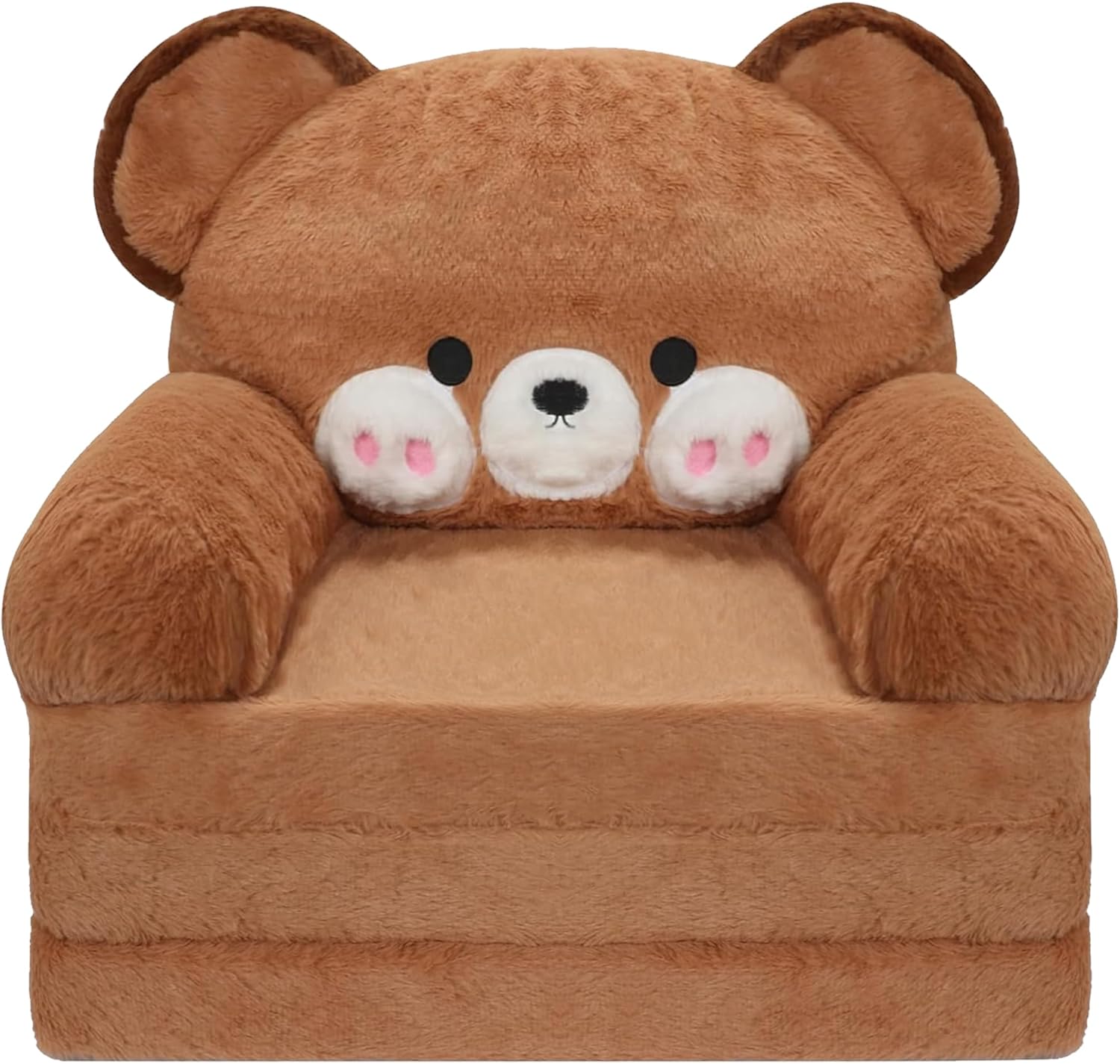 MONKISS Kids Couch, Comfy Toddler Chair, 2 in 1 Fold Out Kids Sofa to Lounger, Baby Sleeper Chair, Toddler Furniture, Birthday Gifts for Boys and Girls, 1~4 Years Old, Bear