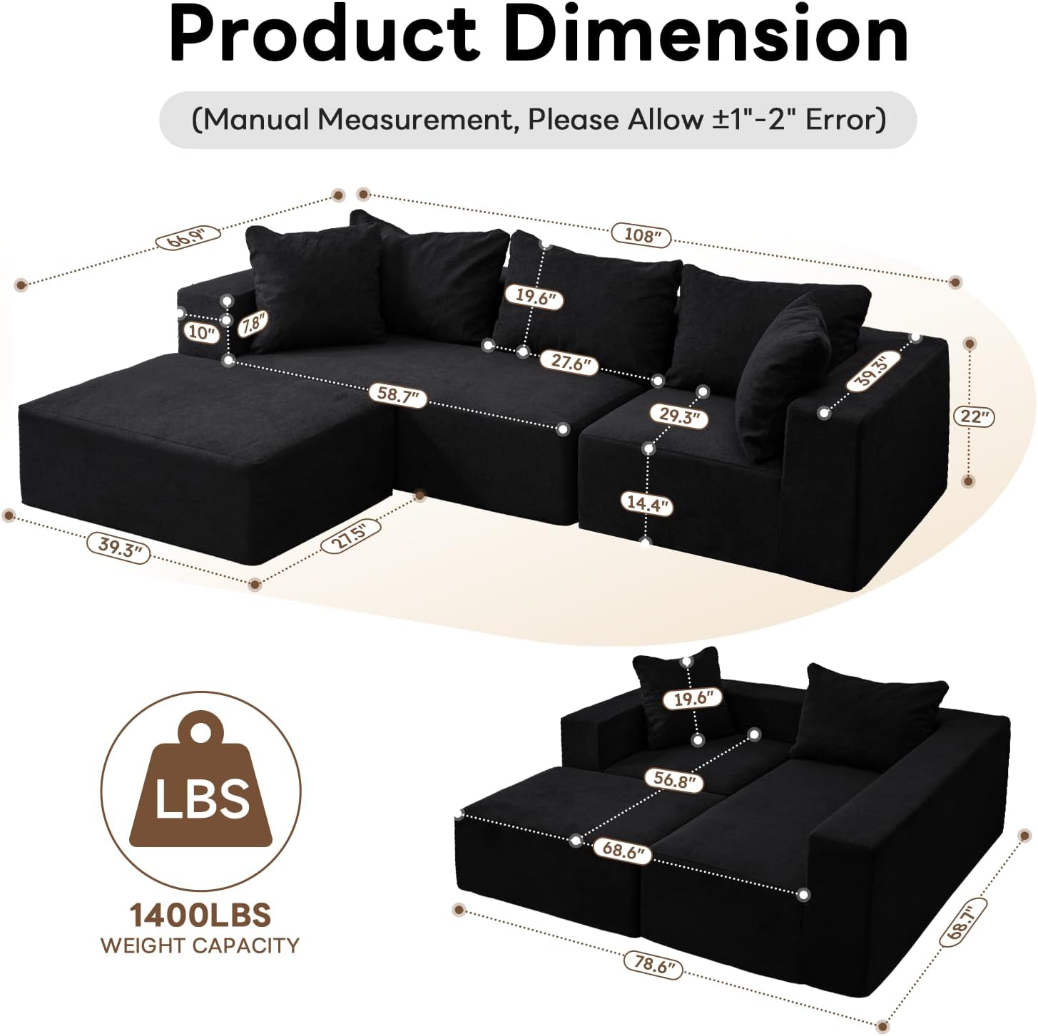 - Unmatched Comfort – Our living room couch offer a 14.2" high-resilience foam cushion and a 29.3" deep seat. Each seat has a matching back cushion, and the armrests double as soft pillows. This modular sectional sofa ensures neck and back support, delivering exceptional comfort for sitting or lounging