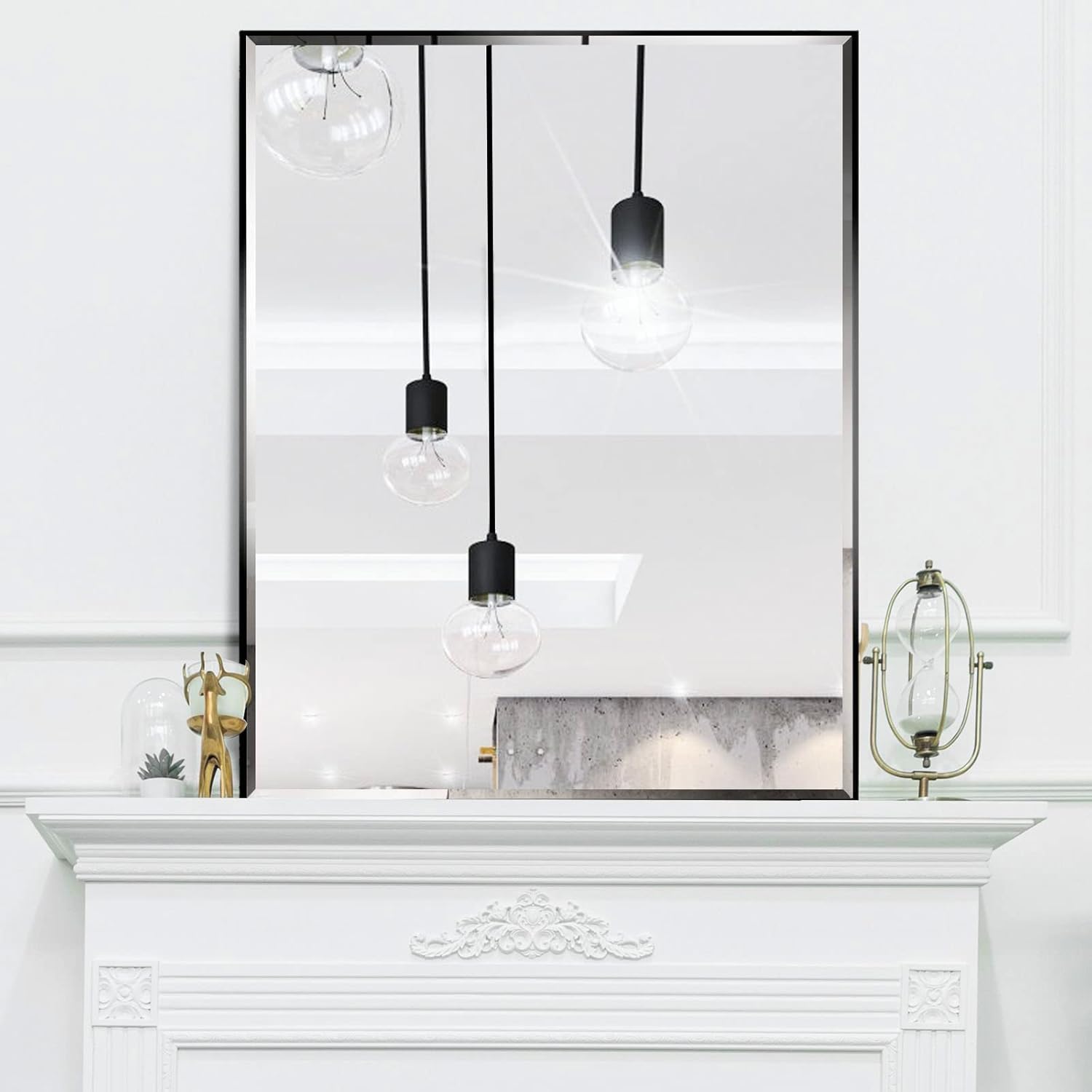 24x32 Inch Black Mirror with Beveled Trim, Aluminum Frame Bathroom Vanity Mirror, Modern Rectangular Wall Mounted Mirror