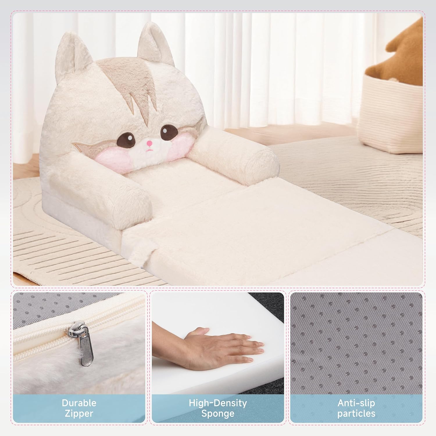 MONKISS Kids Couch, Comfy Toddler Chair, 2 in 1 Fold Out Kids Sofa to Lounger, Baby Sleeper Chair, Toddler Furniture, Birthday Gifts for Boys and Girls, 1~4 Years Old, Cute Cat