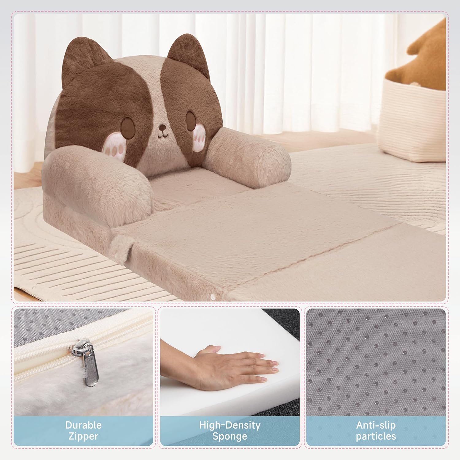 - Flip Open Toddler Couch Design: The convenient 2-in-1 design allows the kids sofa chair to be easily converted into a sleeper. Great for kids to read, watch TV, relax, and play. Suitable for toddlers 1~4 Years Old.