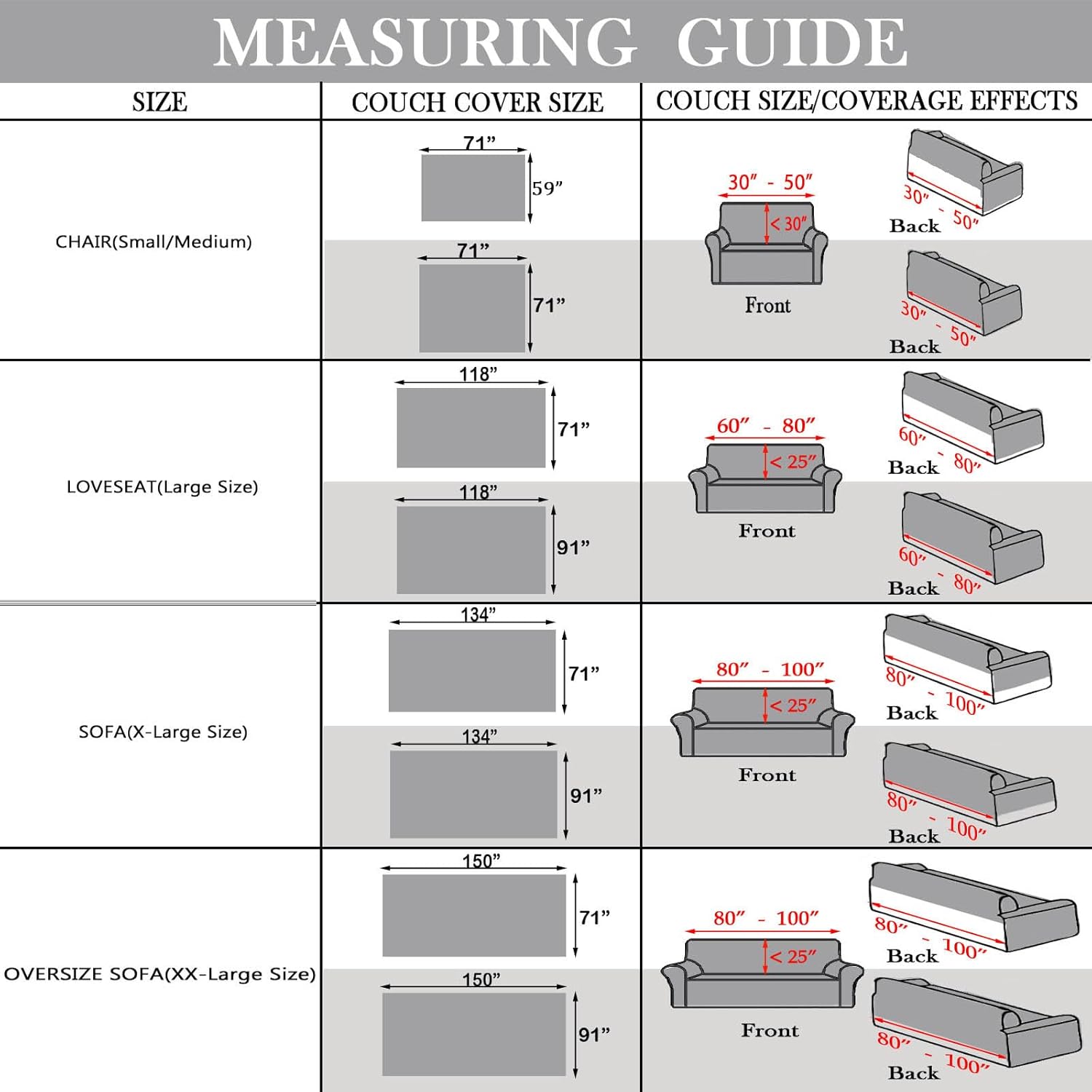 - HOW TO CHOOSE: Please measure your furniture before you buy. We recommend Small Size 59"x 71"for chair/recliner; Large Size 71"x 118 " / 91"x 118 "for loveseat; X-Large Size 71" x 134" / 91"x 134"for sofas; XX-Large Size 71" x 150" / 91"x 150"for oversize sofas; ๐ฌ๐ผ๐ ๐ฐ๐ฎ๐ป ๐ฐ๐ต๐ผ๐ผ๐๐ฒ ๐ณ๐ญ "๐ผ๐ฟ ๐ต๐ญ" ๐ฎ๐ฐ๐ฐ๐ผ๐ฟ๐ฑ๐ถ๐ป๐ด ๐๐ผ ๐๐ผ๐๐ฟ ๐ป๐ฒ๐ฒ๐ฑ๐ ๐๐ผ ๐ฎ๐ฐ๐ต๐ถ๐ฒ๐๐ฒ ๐ฑ๐ถ๐ณ๐ณ๐ฒ๐ฟ๐ฒ๐ป๐ ๐ฐ๐ผ๐๐ฒ๐ฟ๐ฎ๐ด๐ฒ ๐ฒ๐ณ๐ณ๐ฒ๐ฐ๐๐! Our sofa slipcover are suitable for most furniture, provide perfect coverage for the sofa (including armrests).
