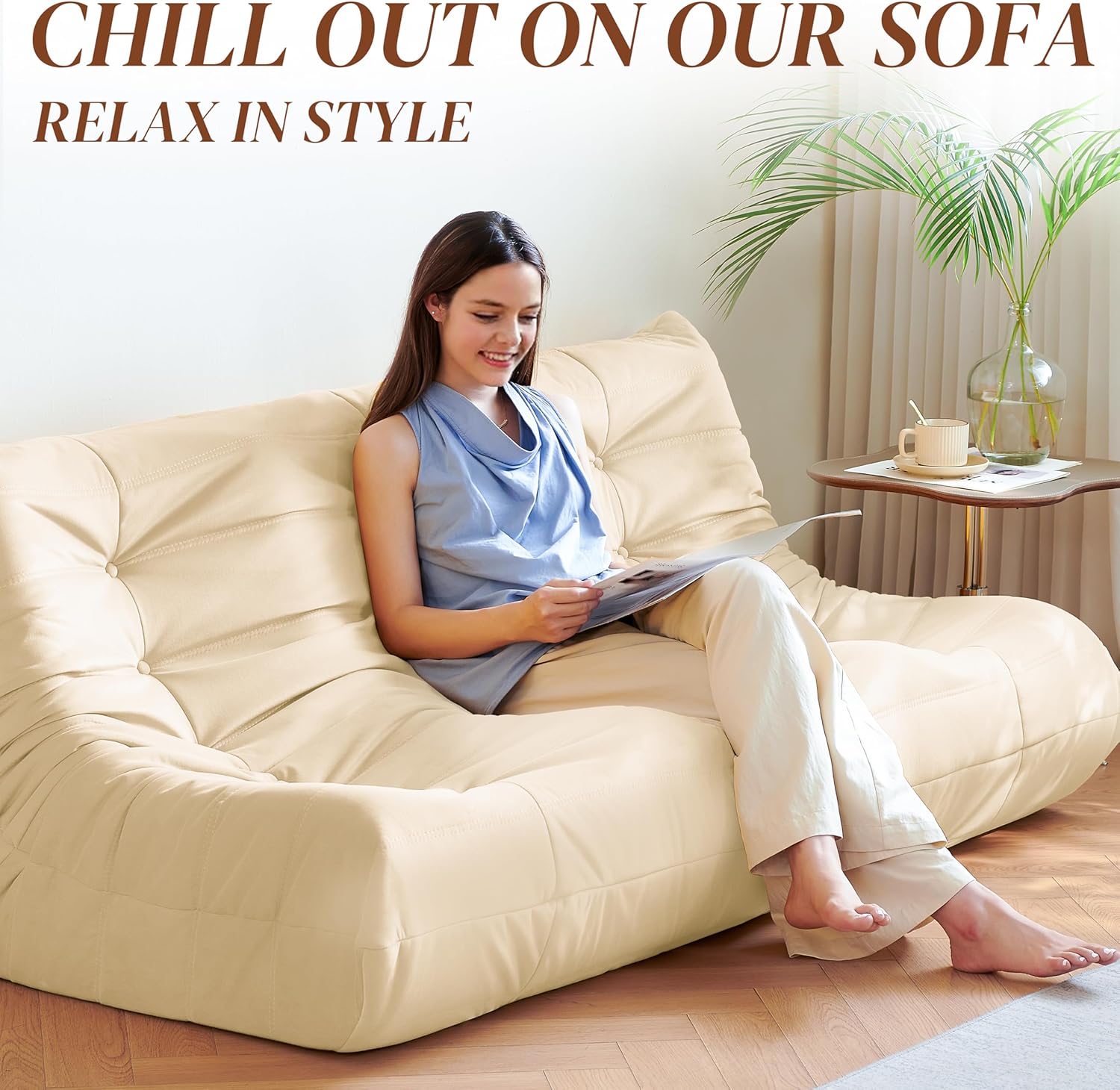 - 【Luxurious High-Resilience Foam Filling】 Filled with premium slow-rebound sponge, this bean bag couch delivers cloud-like comfort without sagging. Ideal for movie nights or gaming marathons – stays supportive even after 8+ hours of use.