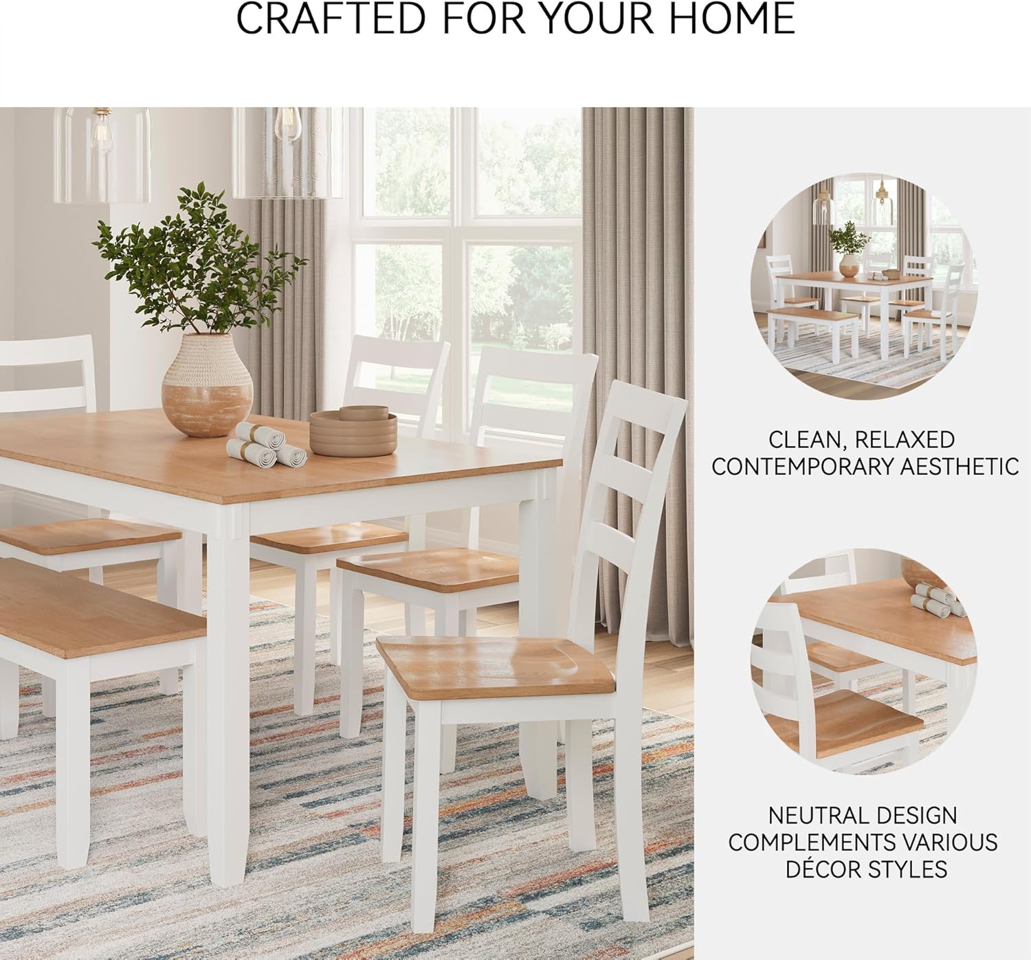 Signature Design by Ashley Gesthaven Modern Dining Table with 4 Chairs and Bench, Set of 6, White & Light Brown