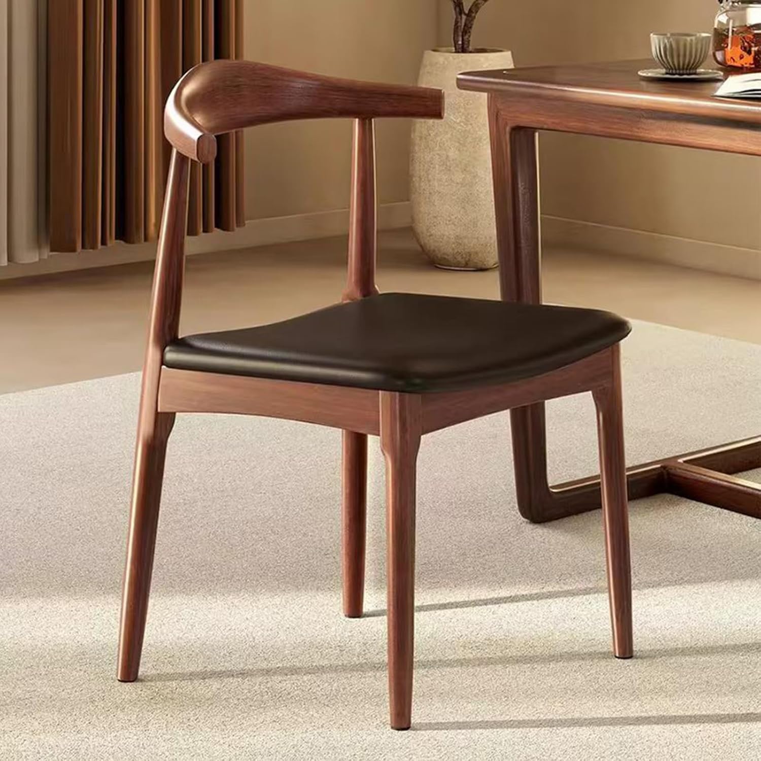 Solid Wood Dining Chairs Set of 2, Mid Century Dining Chairs, Upholstered PU Leather Chairs with Wide Curved Backrest, Chairs for Dining Room, Kitchen, Walnut Finish