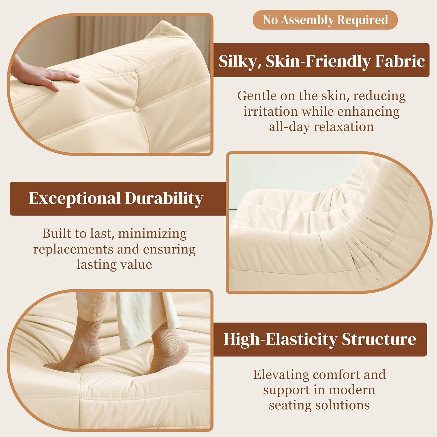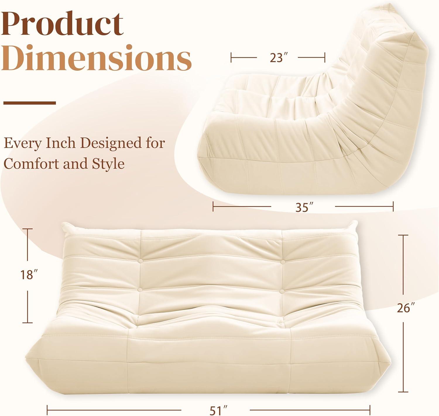- 【Luxurious High-Resilience Foam Filling】 Filled with premium slow-rebound sponge, this bean bag couch delivers cloud-like comfort without sagging. Ideal for movie nights or gaming marathons – stays supportive even after 8+ hours of use.