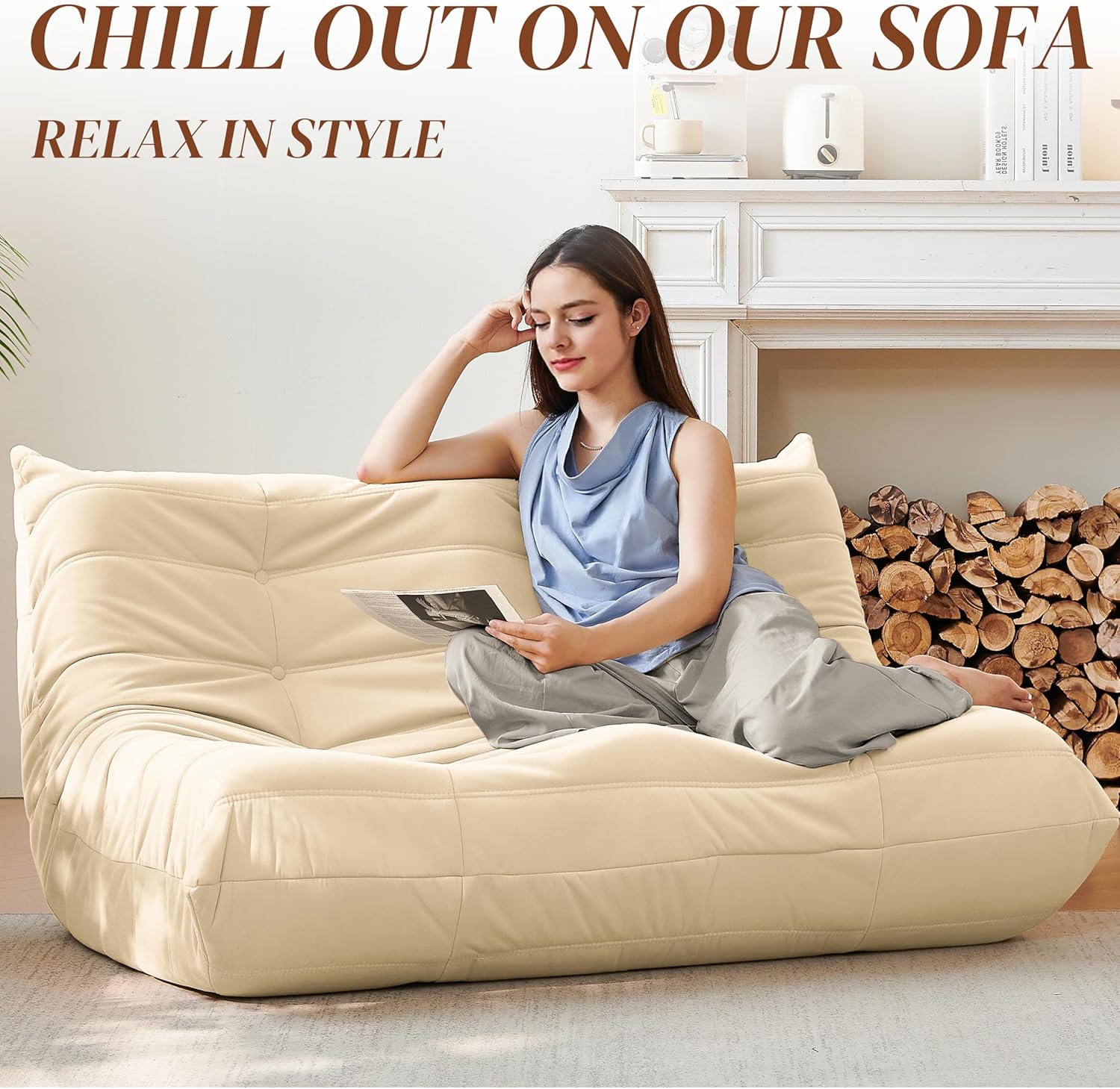 Bean Bag Chair, Loveseat Fireside Chair Bean Bag Sofa for Adults, 2 Seater Bean Bag Chairs for Teens with High-Resilience Foam, Memory Foam Bean Bag for Living Room, Bedroom, Office (Suede, Beige)