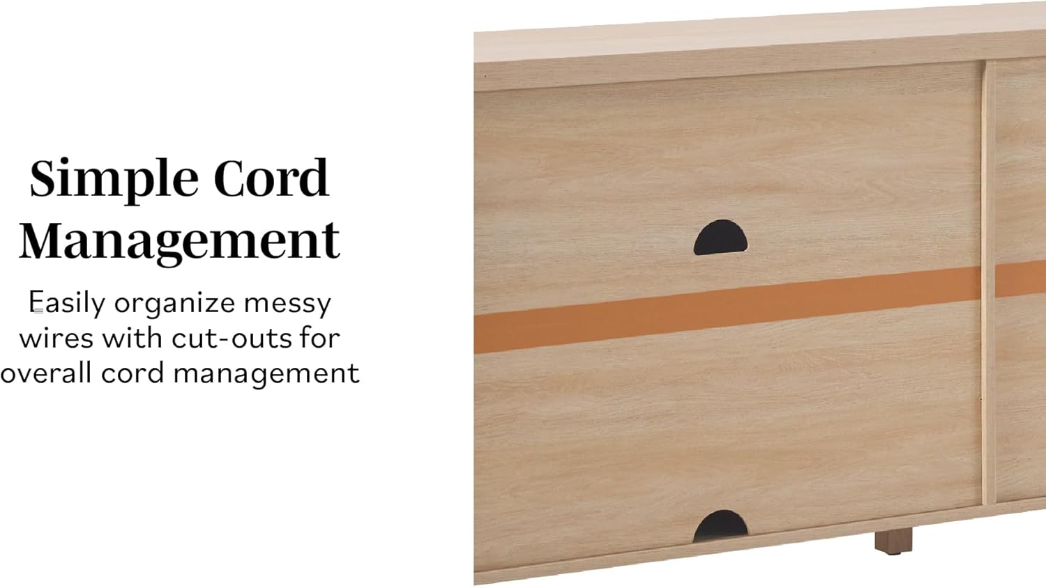 Walker Edison Sasha 4-Door Reeded Sideboard Buffet with Cord Management, 70 Inch, Coastal Oak