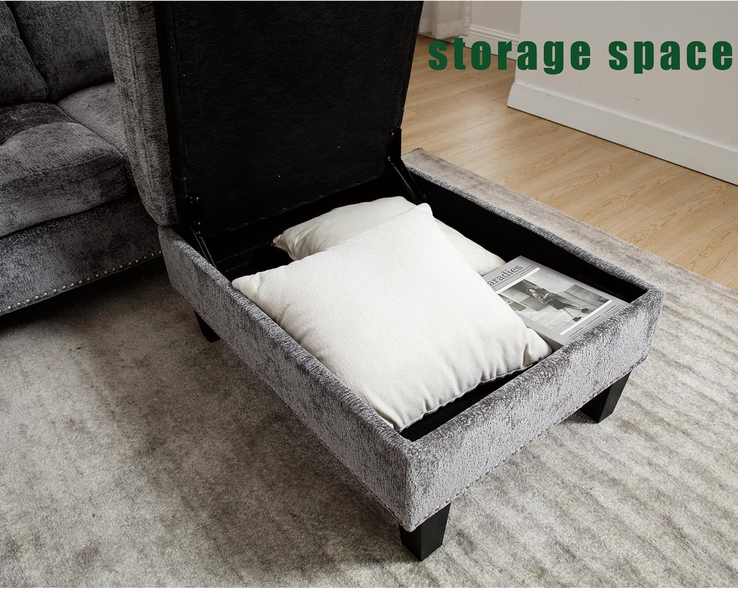 - 【Storage Seat Design】The size of the hidden storage space the footstool 33 W x 25 D x 6.99 H (inches). This feature of the modular couch can solve some of your storage concerns.