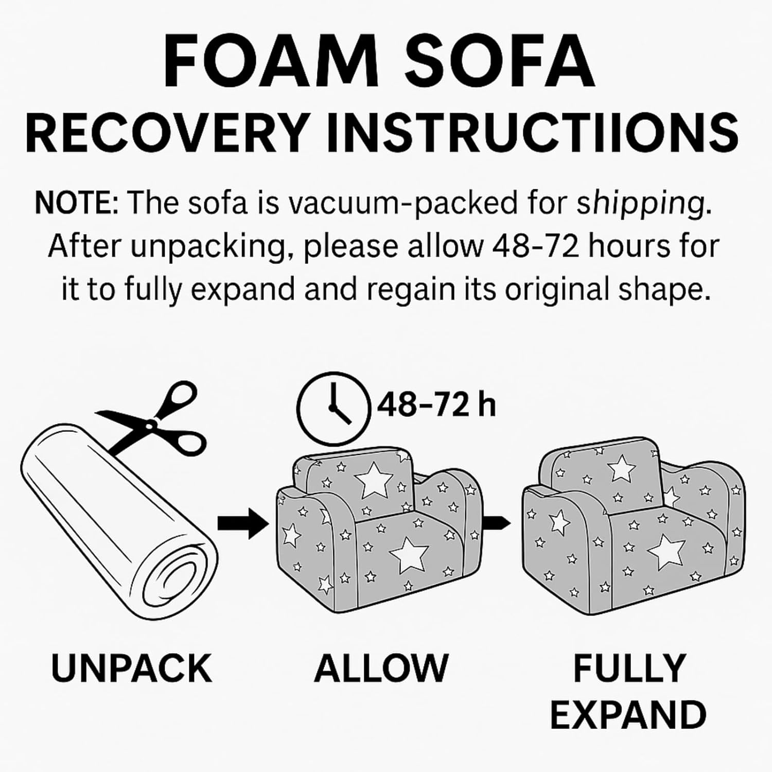 - 2-in-1 Sofa and Bed:This versatile kids sofa easily transforms from a cozy armchair to a comfortable lounger, making it the perfect toddler sofa couch for reading, playing, or napping. High-density foam ensures maximum comfort