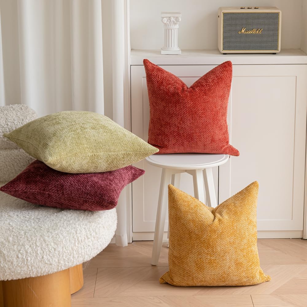 - SET OF 4 THROW PILLOW COVERS 18x18--includes 4 covers 18 inch. Orange, Green, Yellow, Burgundy Red.