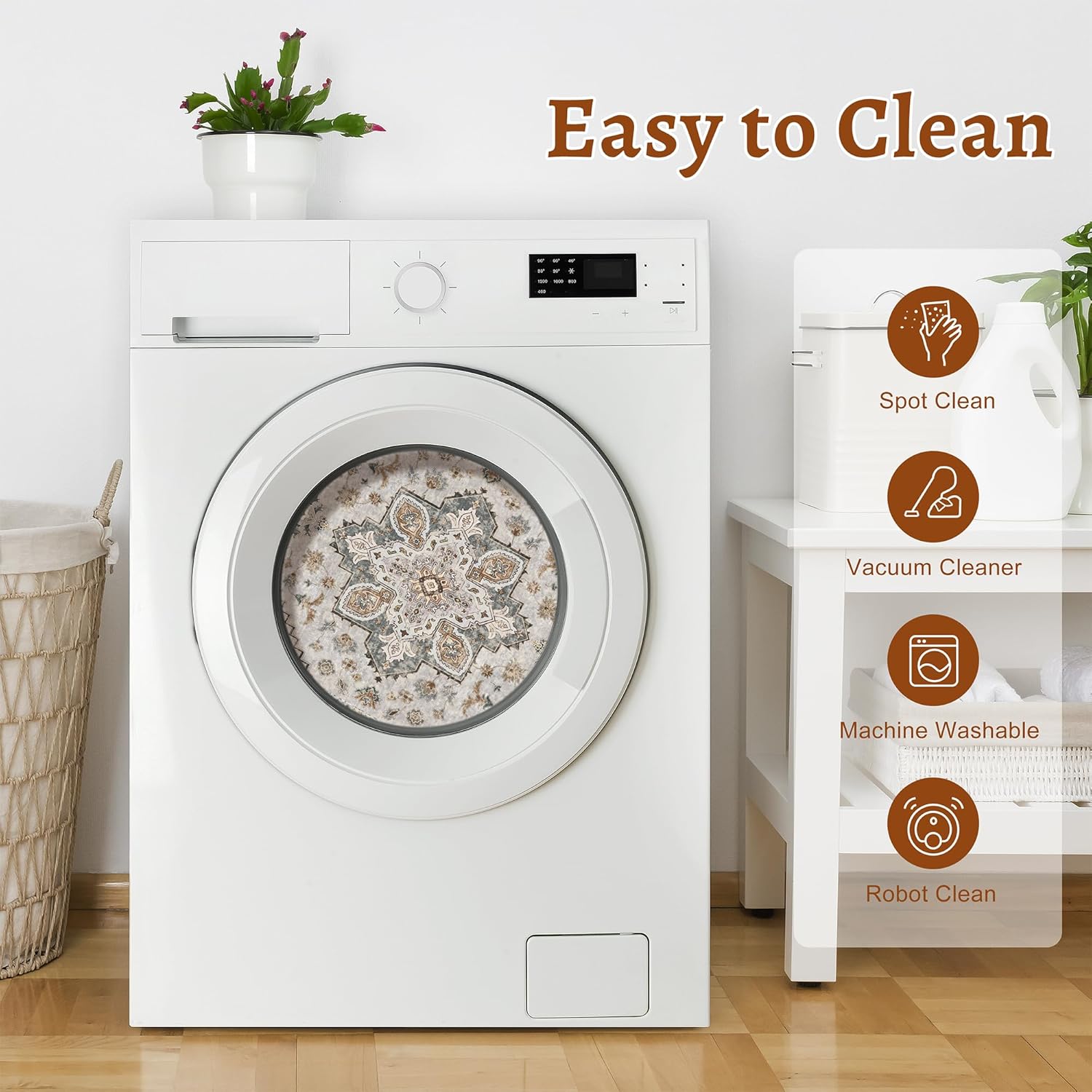 - 【Non-Slip Backing】Experience peace of mind with every step on our vintage area rug, featuring an innovative TPE non-slip rubber backing. Designed to keep your carpet securely anchored, it effortlessly holds its ground against movement and slippage. Provides safety and stability for high-traffic areas such as entrances or front doors, reducing the likelihood of people and pets slipping, making it easy to walk and play