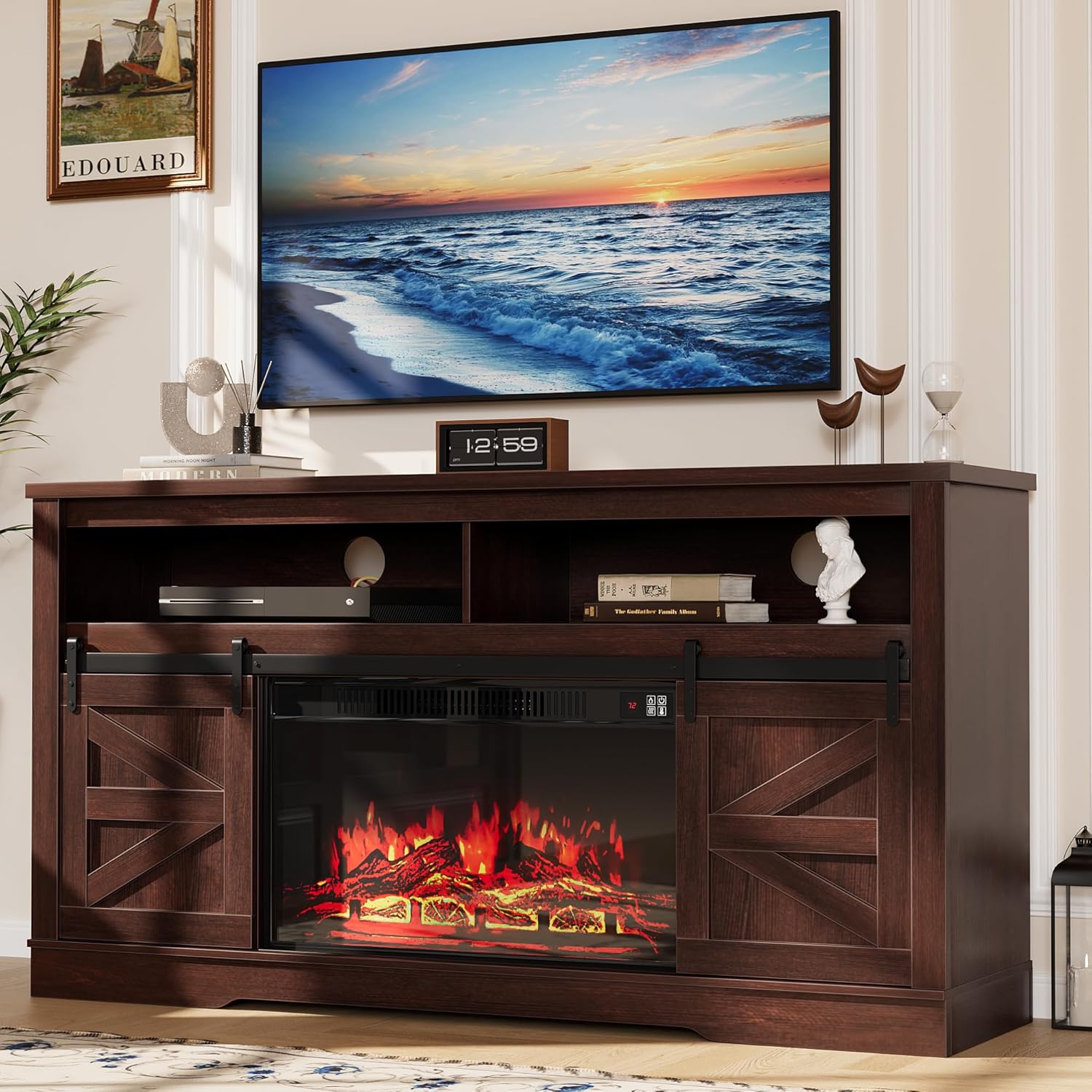 - Item Weight 107 Pounds : Style Sliding Barn Doors Fireplace TV Stand