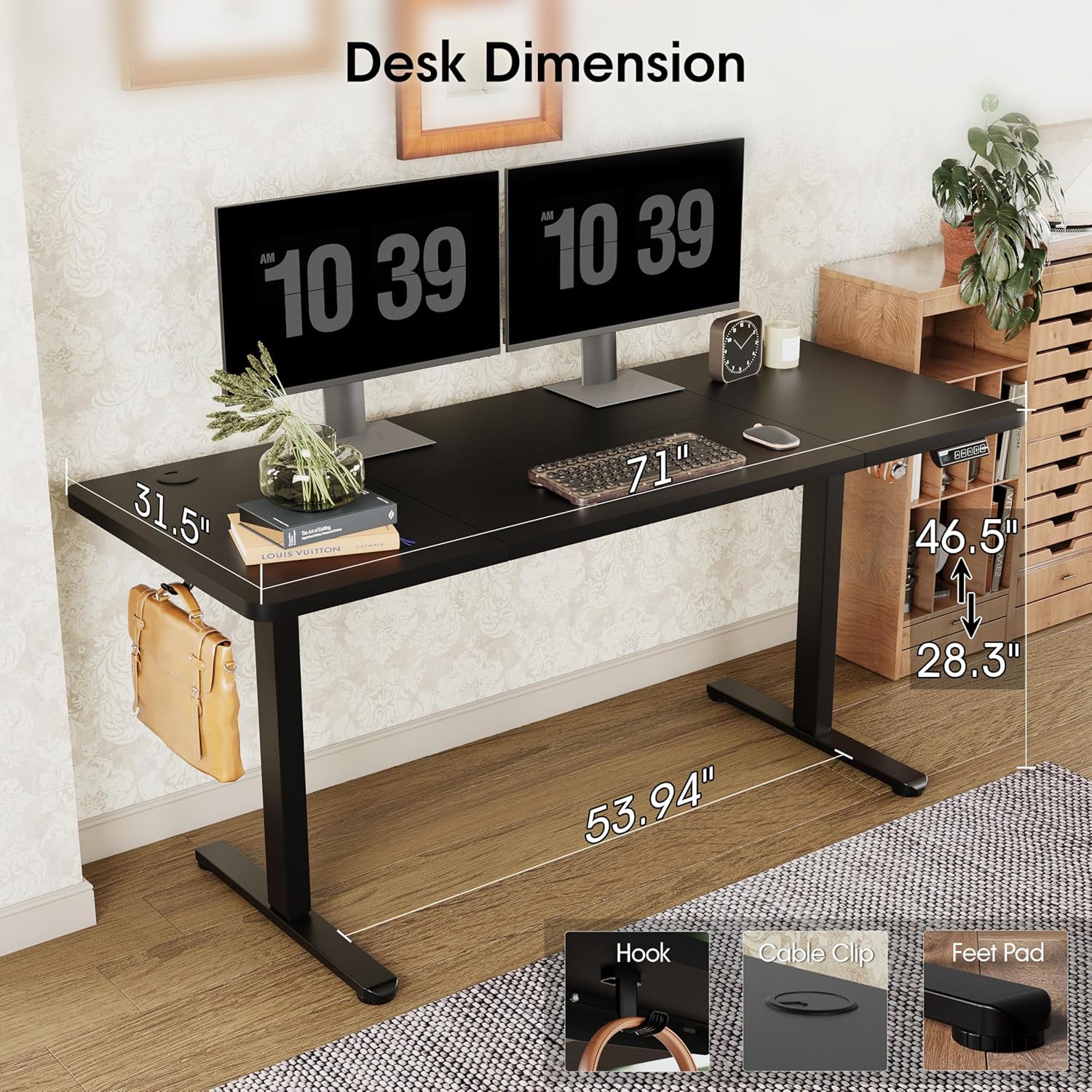Monomi Electric Standing Desk, 71 x 31.5 inches Height Adjustable, Ergonomic Home Office Sit Stand Up Desk with Memory Preset Controller (Black Top/Black Frame)