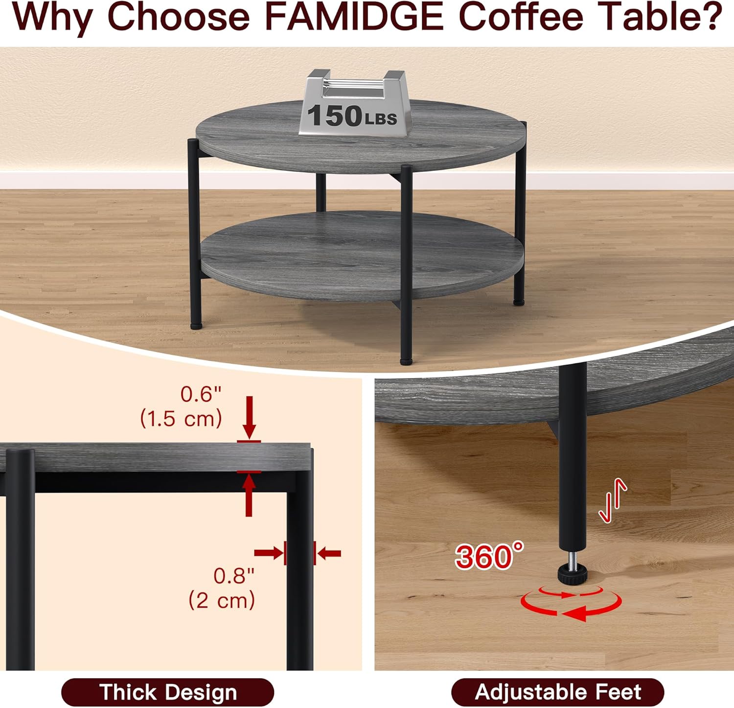 - Reinforced X-Shaped Steel Tube: Upgraded version double-layer round coffee table features a bottom integrated steel tube reinforcement design, providing an X-shaped steel frame for enhanced stability and support. The robust construction ensures that coffee table round remains steady even under heavy use, so that it won't wobble every time you pick up your coffee cup